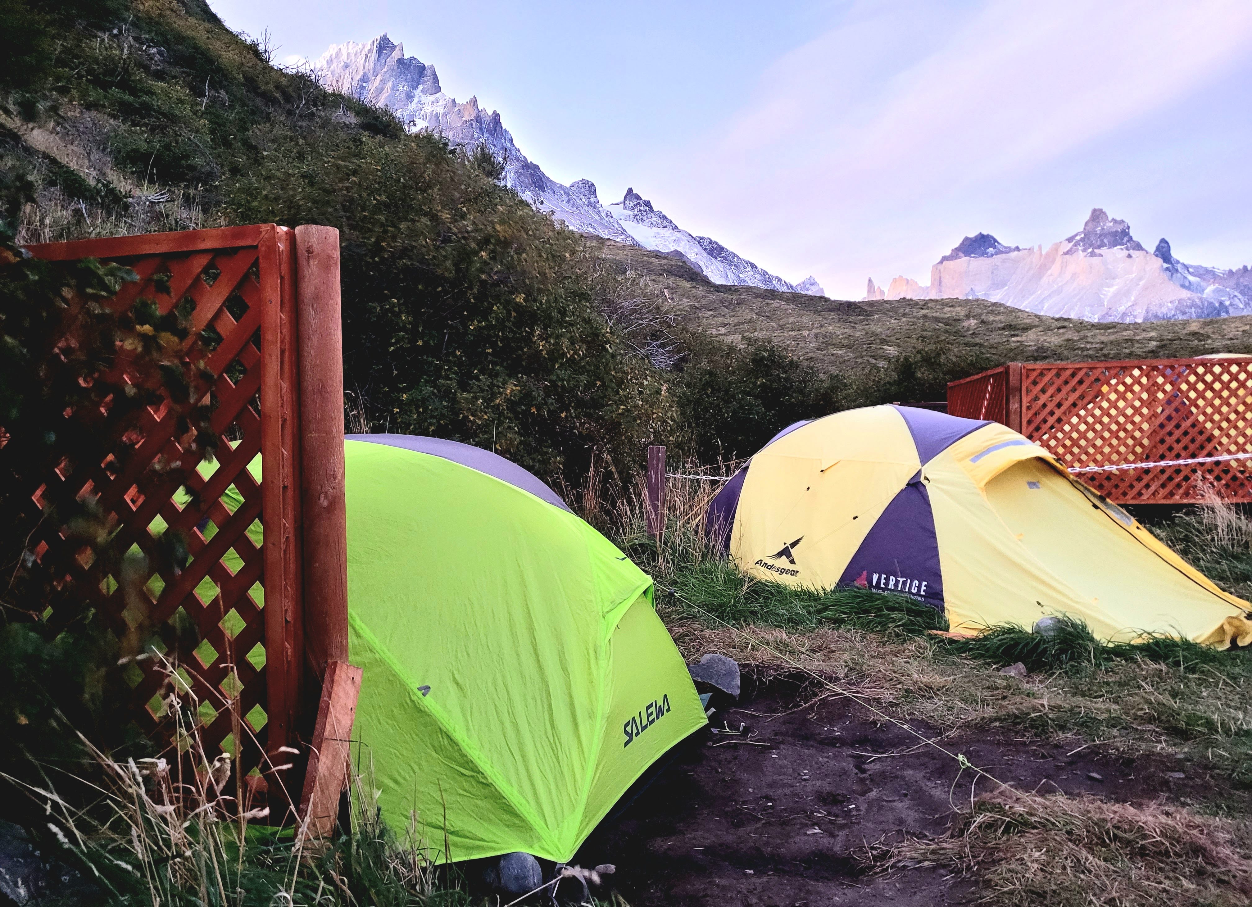 At 18 o’clock, we got on the catamaran (30 USD each cash only) and in 30 minutes landed at Camp Paine Grande. We checked in, pitched the tent, made dinner, and were in bed by 10 pm. We heard stories about mice in the campgrounds so we stored all our food in a locker inside the building (it’s not for free but the lady at the reception was nice and didn’t charge us). However, that didn’t stop one of the mice from coming and trying to chew through my backpack. We ended up sleeping with the backpacks inside the tent every night.