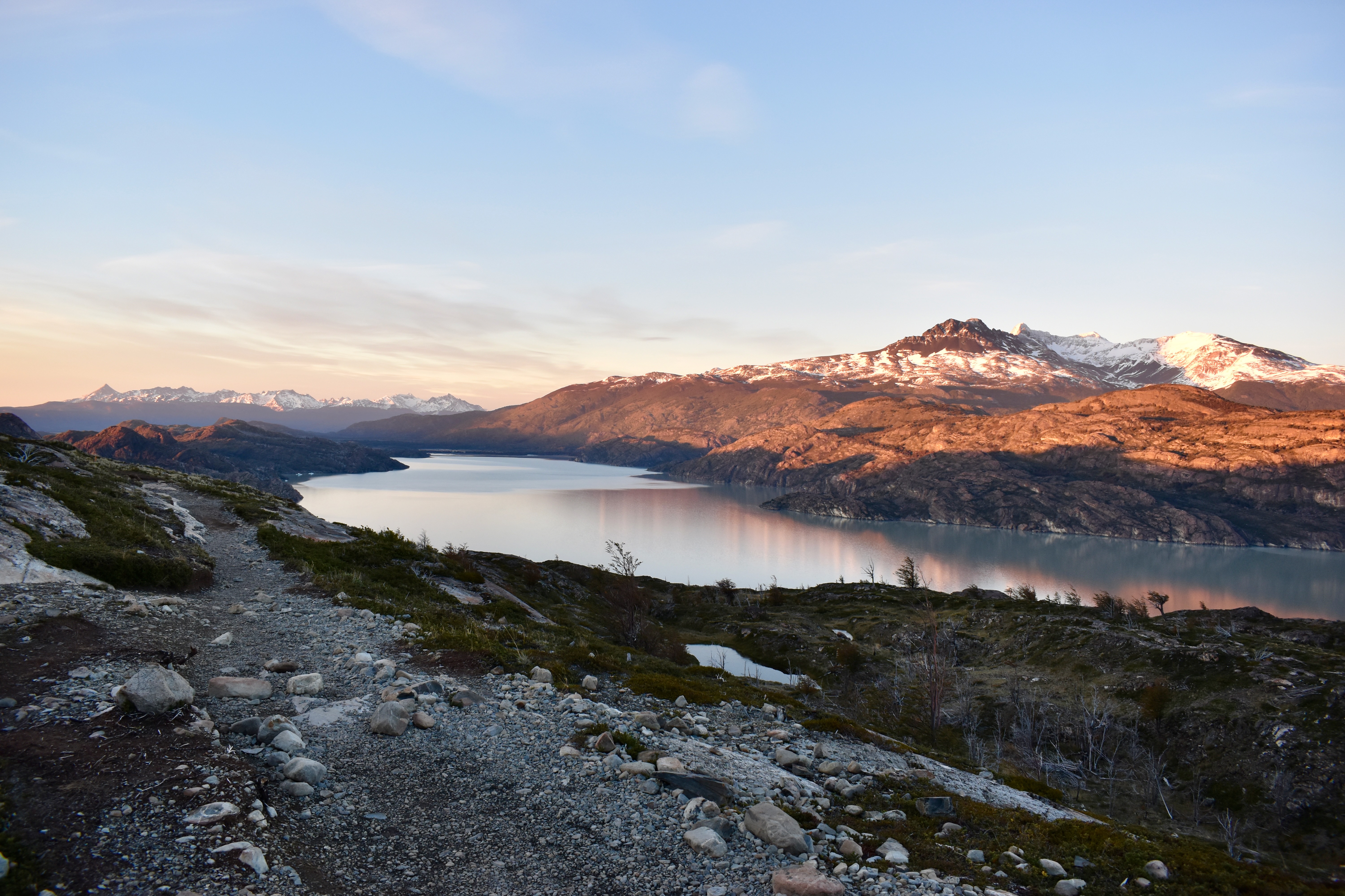 We missed the Grey Glacier yesterday because of the hassle with the bus, so we decided to get up at 5:30 am and hike to the glacier viewpoint when it was pitch black. It was an easy 6 km and we stopped midway through to take some star photos. We arrived just in time for sunrise and had a coffee at the viewpoint. We couldn’t stay long because we had to get back, pack the tent, make breakfast, and continue to make it to the next campground.