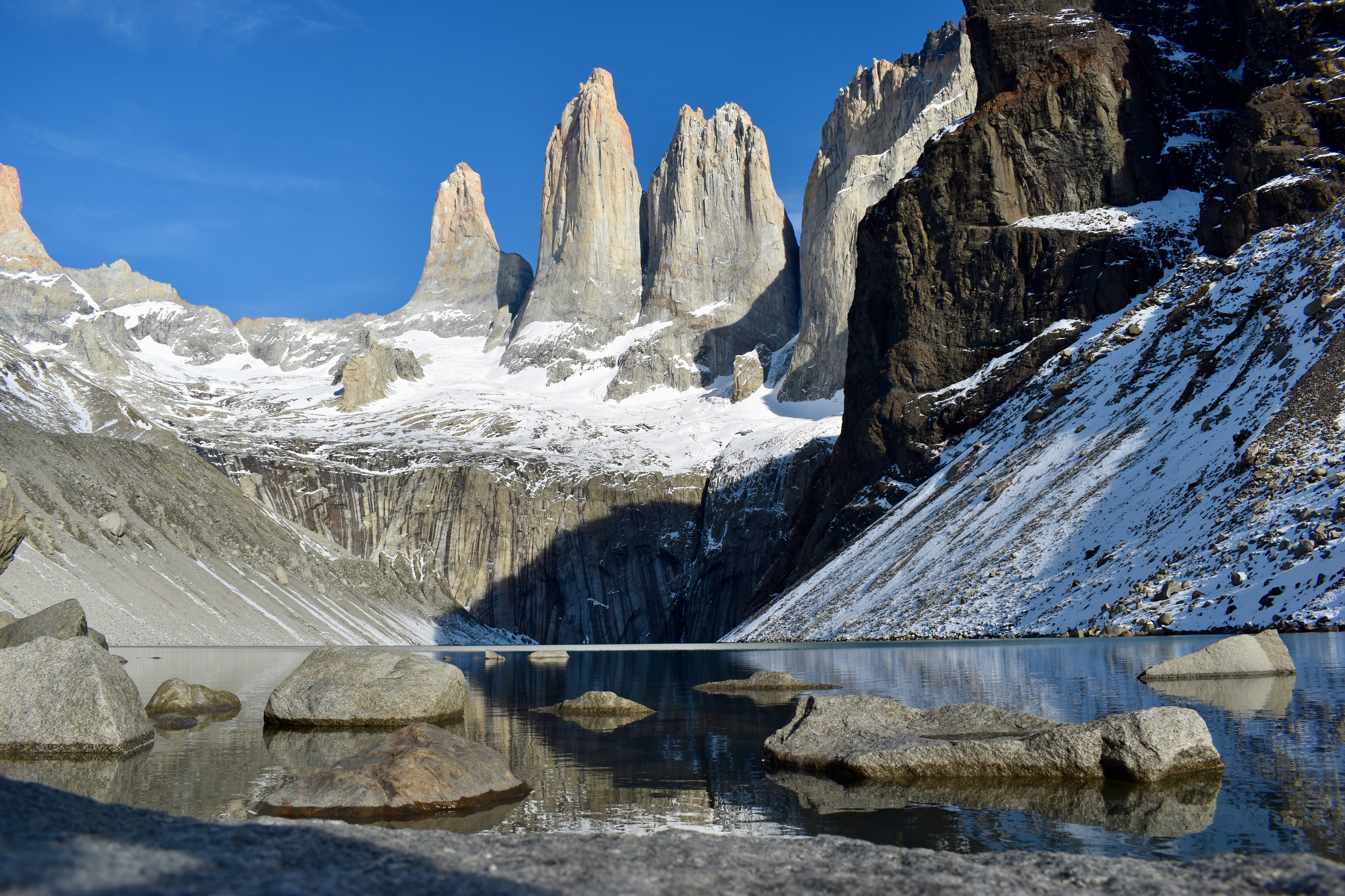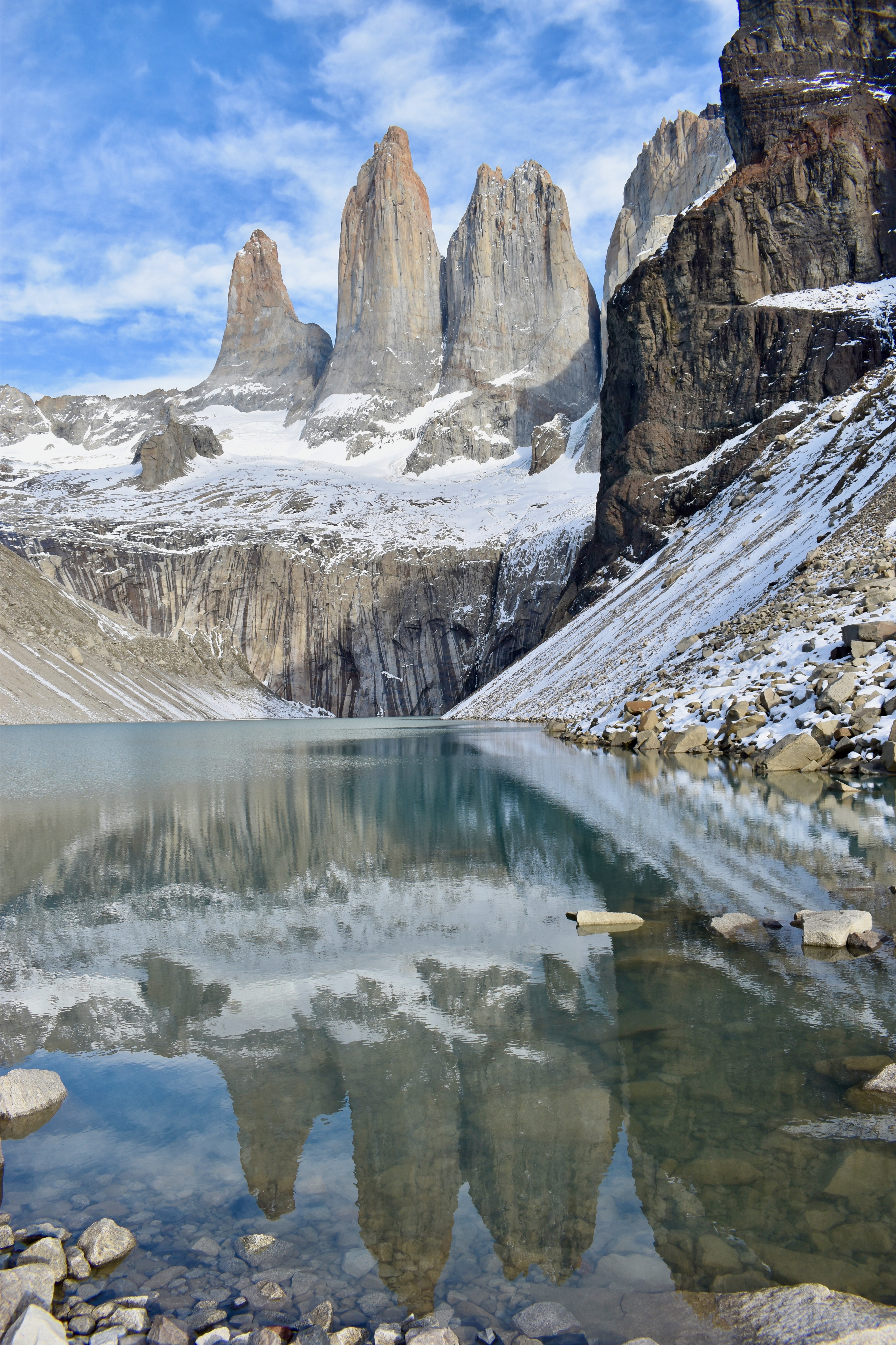 There was no rush that day because we booked a bus to go back to Puerto Natales at 20:15 and we were done with the breakfast slightly after 8 am. However, we like to keep a swift pace on the way up so we hiked up pretty quickly the big hill from Centro and descended to Camp Chilian. We got there just in over an hour and continued similarly towards the Torres Valley and up to the famous Torres towers and the lake. We surprised ourselves when we got all the way to the lake and our tracking app was showing a total of 2 hours and 32 minutes walking (not bad for 10 km and 700 m of elevation). That’s when we started thinking if maybe we could make the bus at 3 pm and rather have an easy evening in the town than wait here for the late bus.
