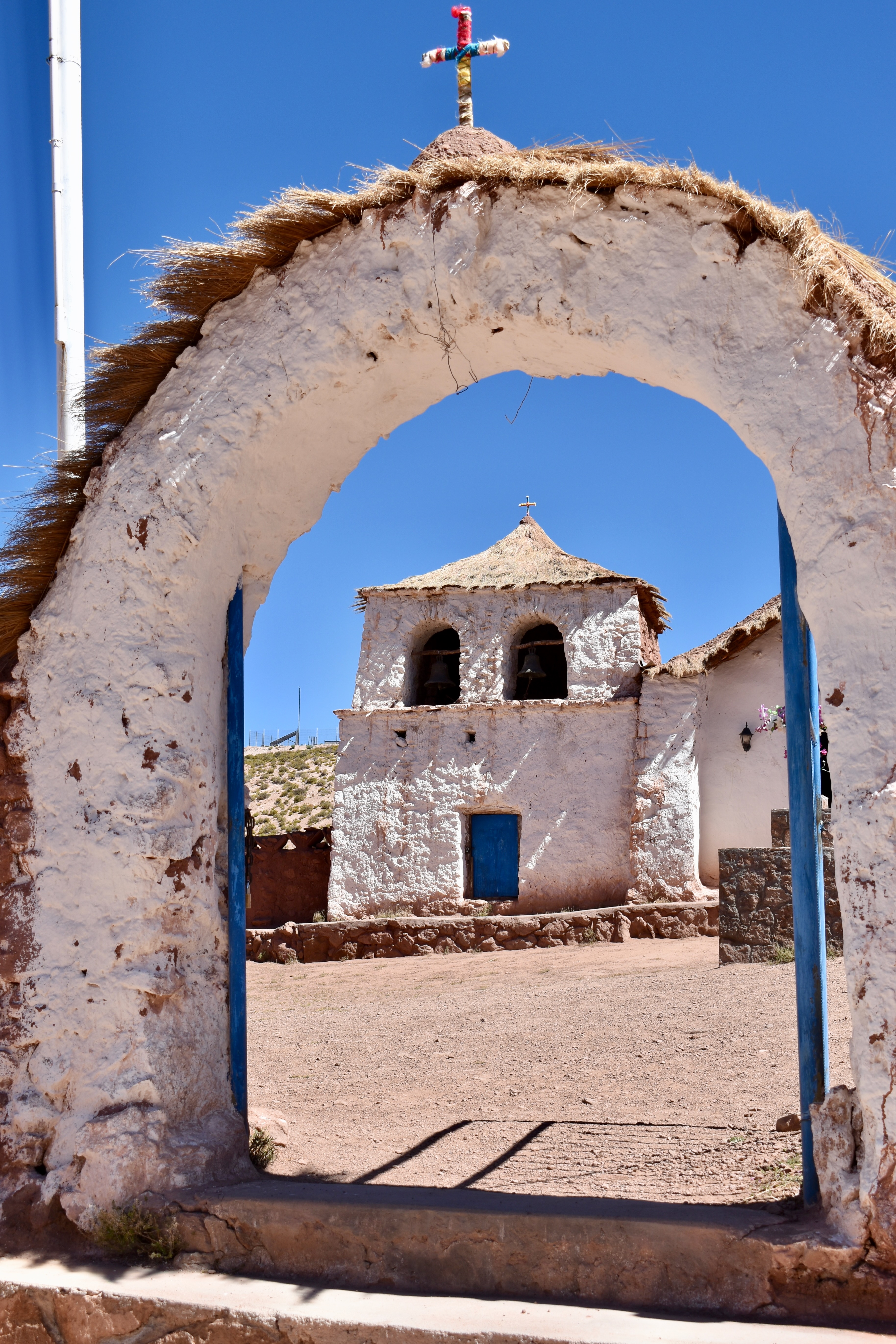 When we were finished, we drove to a nearby hill overlooking the geyser field, made coffee, and had breakfast. We then continued back and stopped at a village called Machuca, where we visited a local chapel and bought meat (no idea what meat) skewers and tea (all for 6,000 pesos). We had a few stops along the way to take photos of lamas feeding in the shallow water. We also stopped at the Cactus Canyon but only took some photos and didn’t hike down.