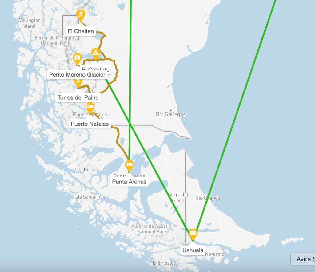 We had two nights in Puerto Natales to rest and get ready for the 3 nights/4 days W trek in Torres del Paine. We had the whole day to get ready so we took it easy and had coffee, did some research, booked accommodation in Punta Arenas, and bought tickets to the park in the morning. Around 11 am we went out to first see the town of Puerto Natales and then to see another big supermarket in the town to buy more supplies. We also stopped to rent a -10° sleeping bag (got half price at Yagan Hous, $4/day) as an addition to ours and bought a ticket for a bust to Punta Arenas for when we get back. I have to mention that the Yagan Hous had a random selection of sleeping bags and coincidentally we picked the one from Hannah, a Czech company based in Plzeň, where I’m from.