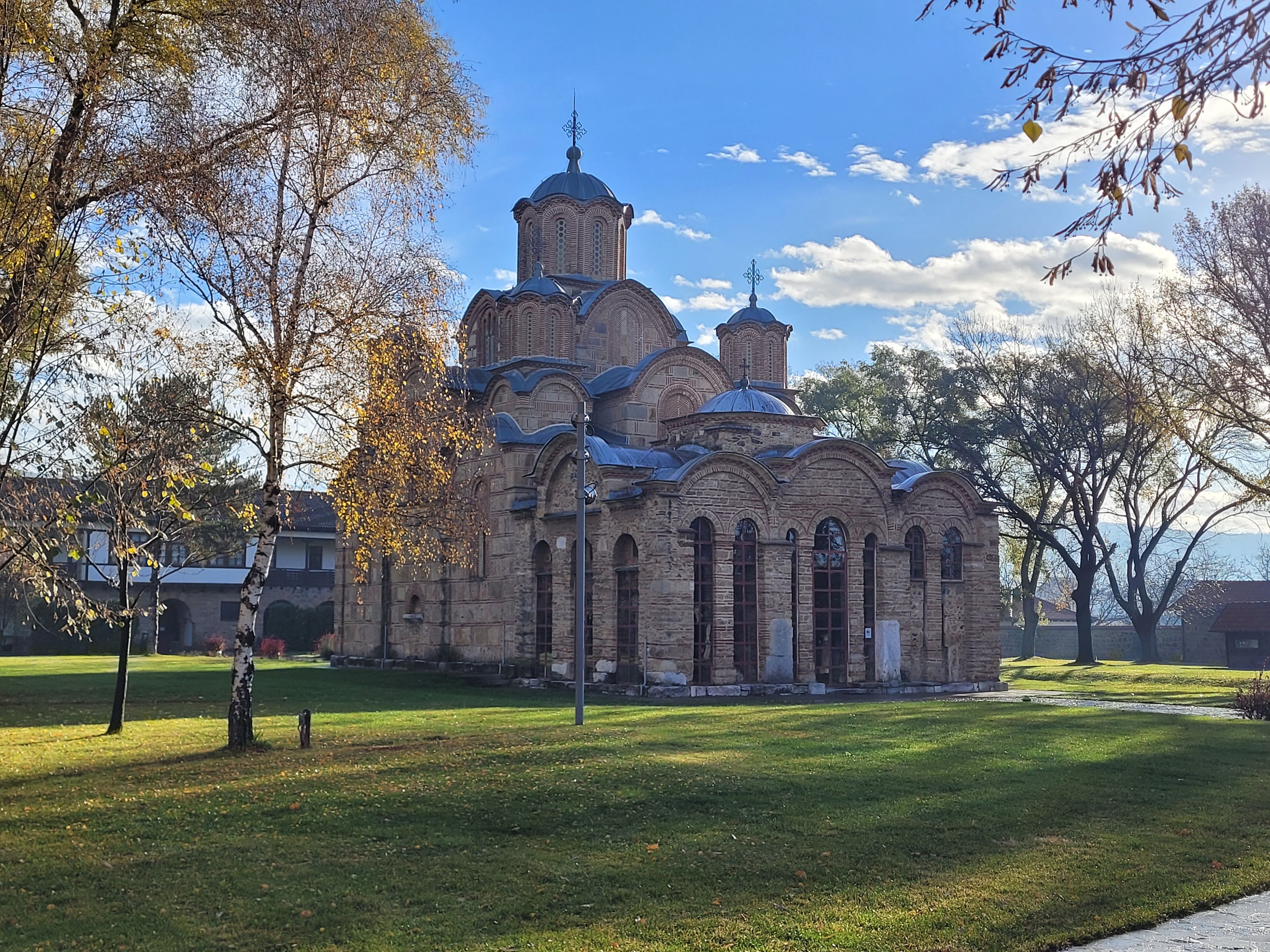 We woke up to a lovely morning and set off early towards the Pristina Bear Sanctuary. We didn’t have much planned for Kosovo and spotted this place on Maps two days ago. Along the way, we stopped for a short visit to the Orthodox Monastery Gračanica. This Monastery was built in 1321, it’s one of the UNESCO sites in Kosovo, and if I remember correctly, the entrance was free. There are many frescas inside the church and there is also a large garden surrounding it. This church is Serbian and the place had Serbian flags everywhere so we didn’t even know which country we entered.