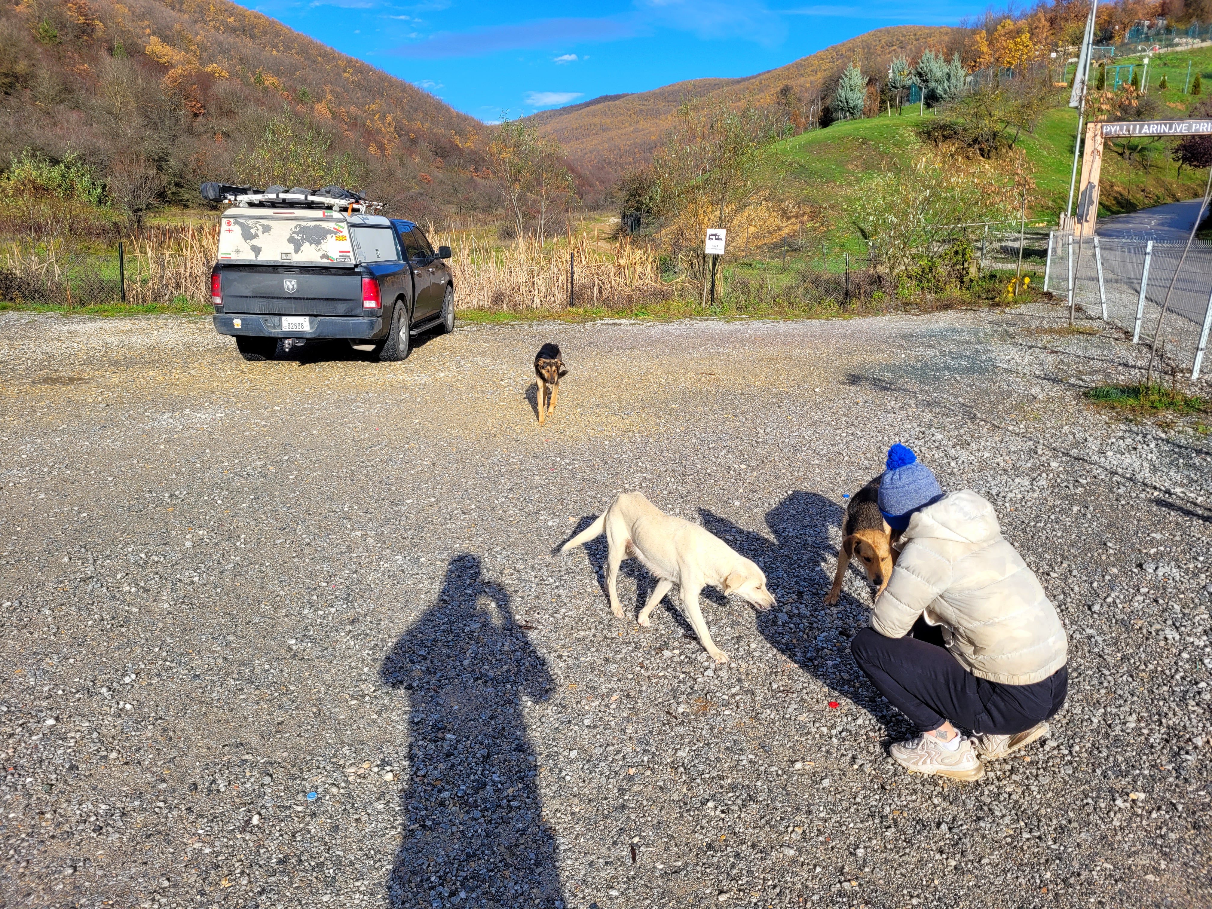 Since the sanctuary was still closed, we used the time to make a coffee, breakfast, and tidy up the car a wee bit. A few stray dogs came to greet us in the morning so we gave them some leftovers. The place was really nice and the entrance was just $3. We learned that the bears were often used as a prompt to bring people to restaurants etc. and were tied or in a cage by the entrance or by the road like an advertisement. Here we also confirmed that Iran has small bears exactly in the area near Yazd where we spotted one during one of our hikes. It was a nicely spent morning and definitely worth the small detour from Pristina.