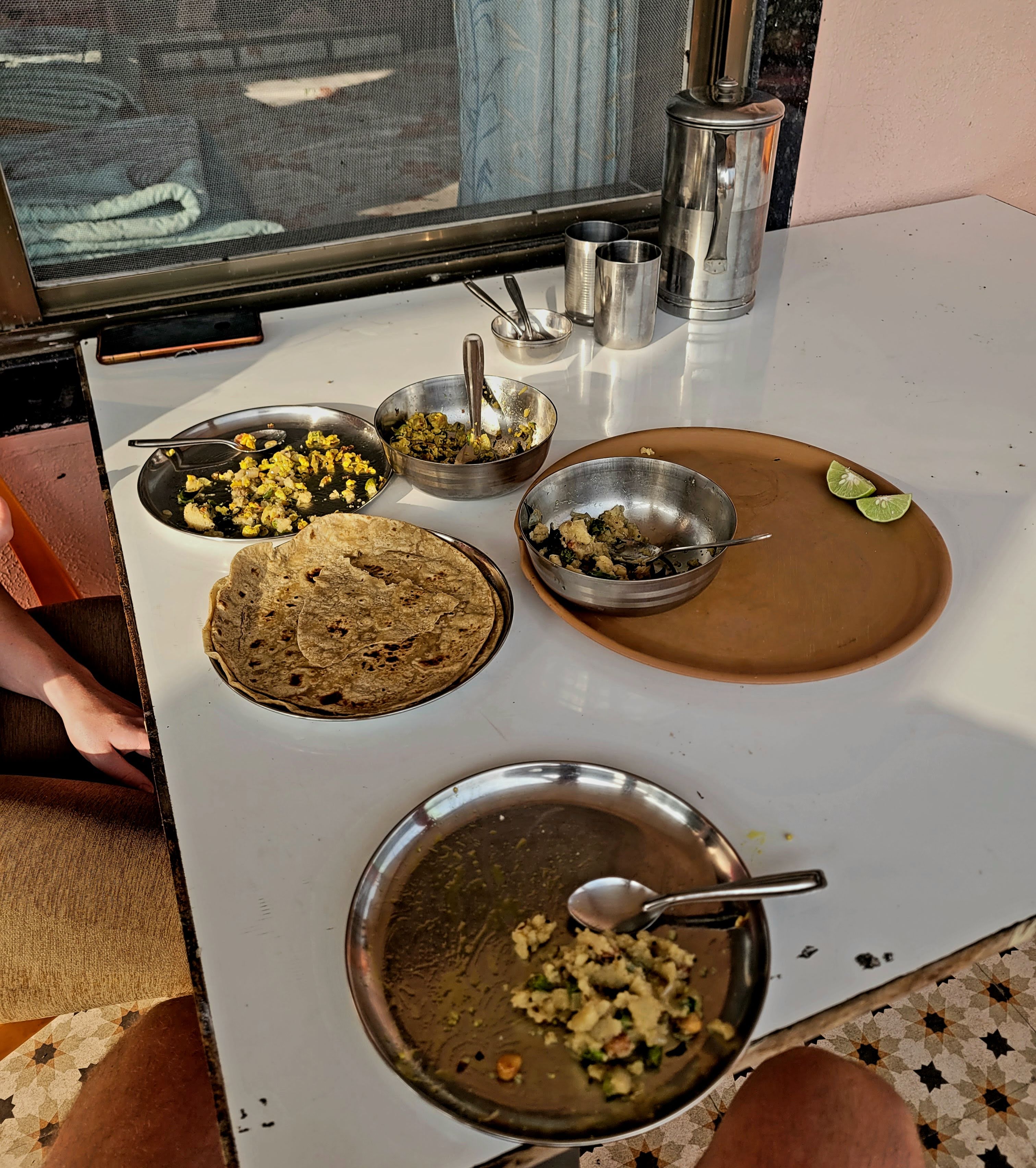 We stopped for a quick breakfast of Misal (which could only be described as dry Chinese soup and a variety of crackers with sauce) which was surprisingly nice.