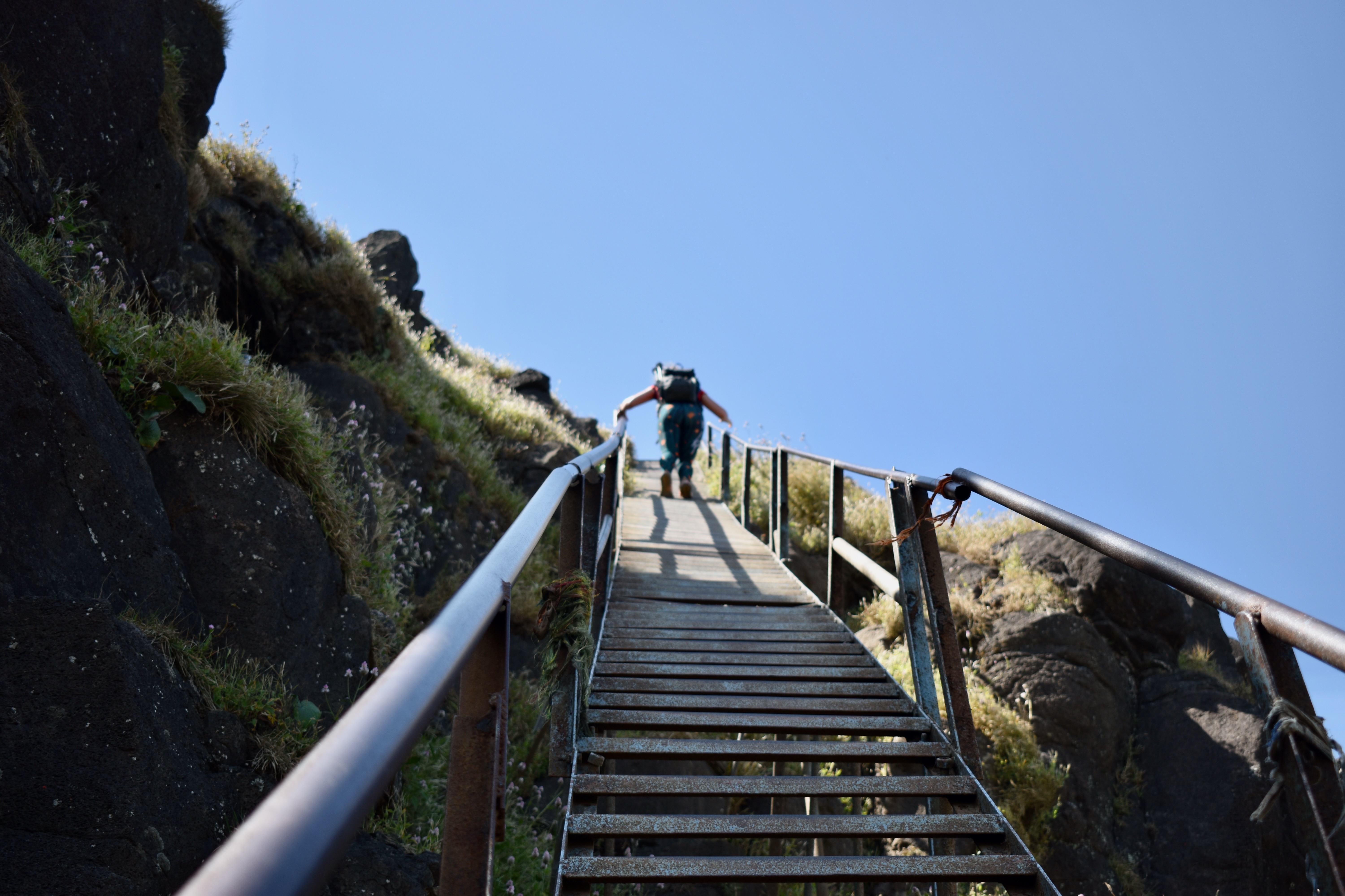 Even though it’s less than one kilometer from the bottom of the stairs to the peak, it took us almost an hour because we had to wait a lot while climbing the stairs. And I’d say it wasn’t even busy and don’t want to imagine how dangerous the stairs get when there are more people.
