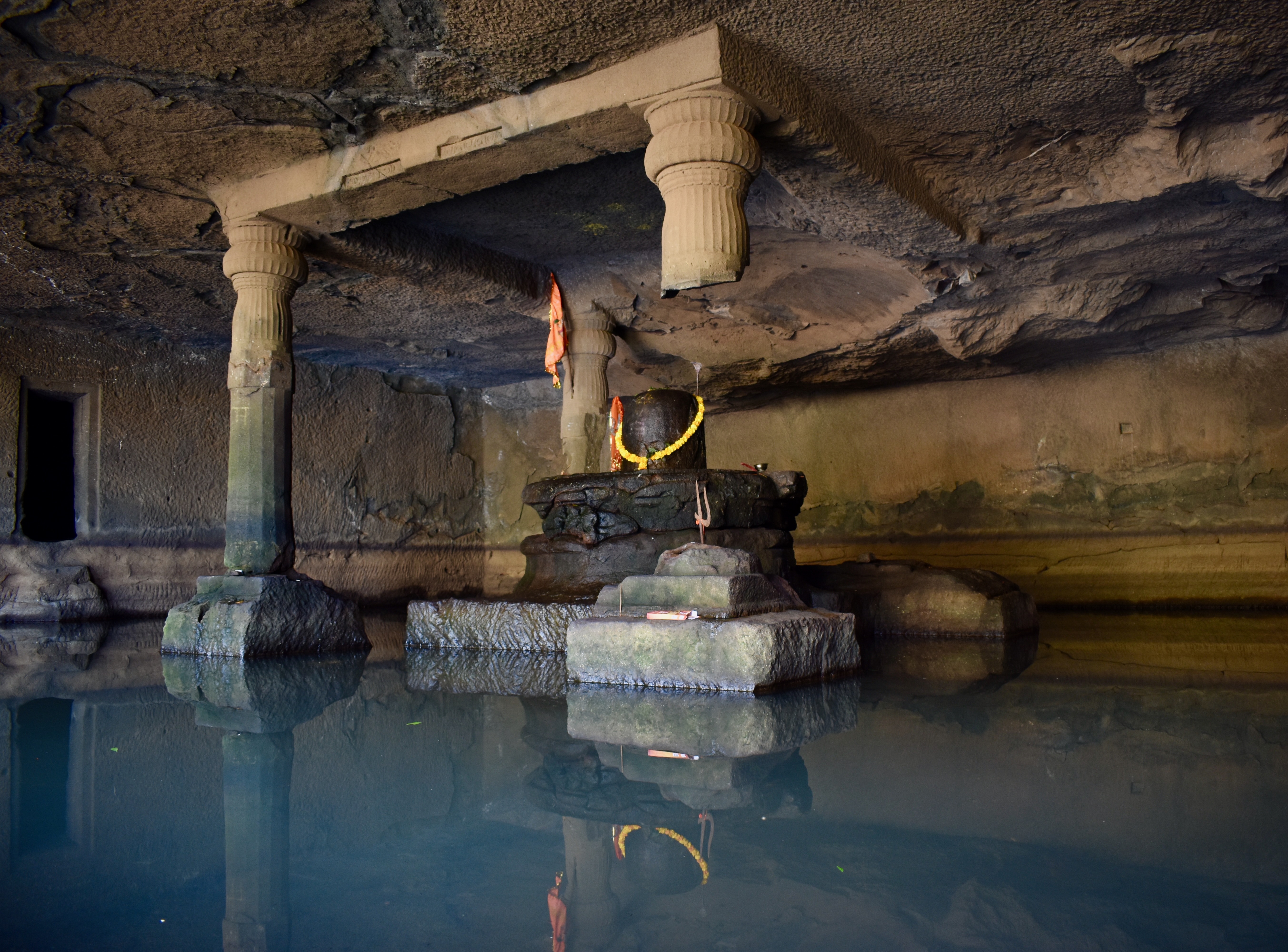 Because it was just before Diwali and we had met so many people on the other trails, we were really surprised that we were on this one alone. But it worked amazingly in our favor because we could focus on the incline and didn’t have to worry about passing people. In the end, we were done with the steep part at the start in 40 minutes, finished with the small more difficult climbing part in another 20, and in under two hours, we were already exploring the Harishchandragad Temple! This was actually the largest ruin we saw during our hikes and it was well taken care of. There were also many carved caves/rooms in the area. One of them, the Kedareshwar Cave, was especially nice with an altar surrounded by water.