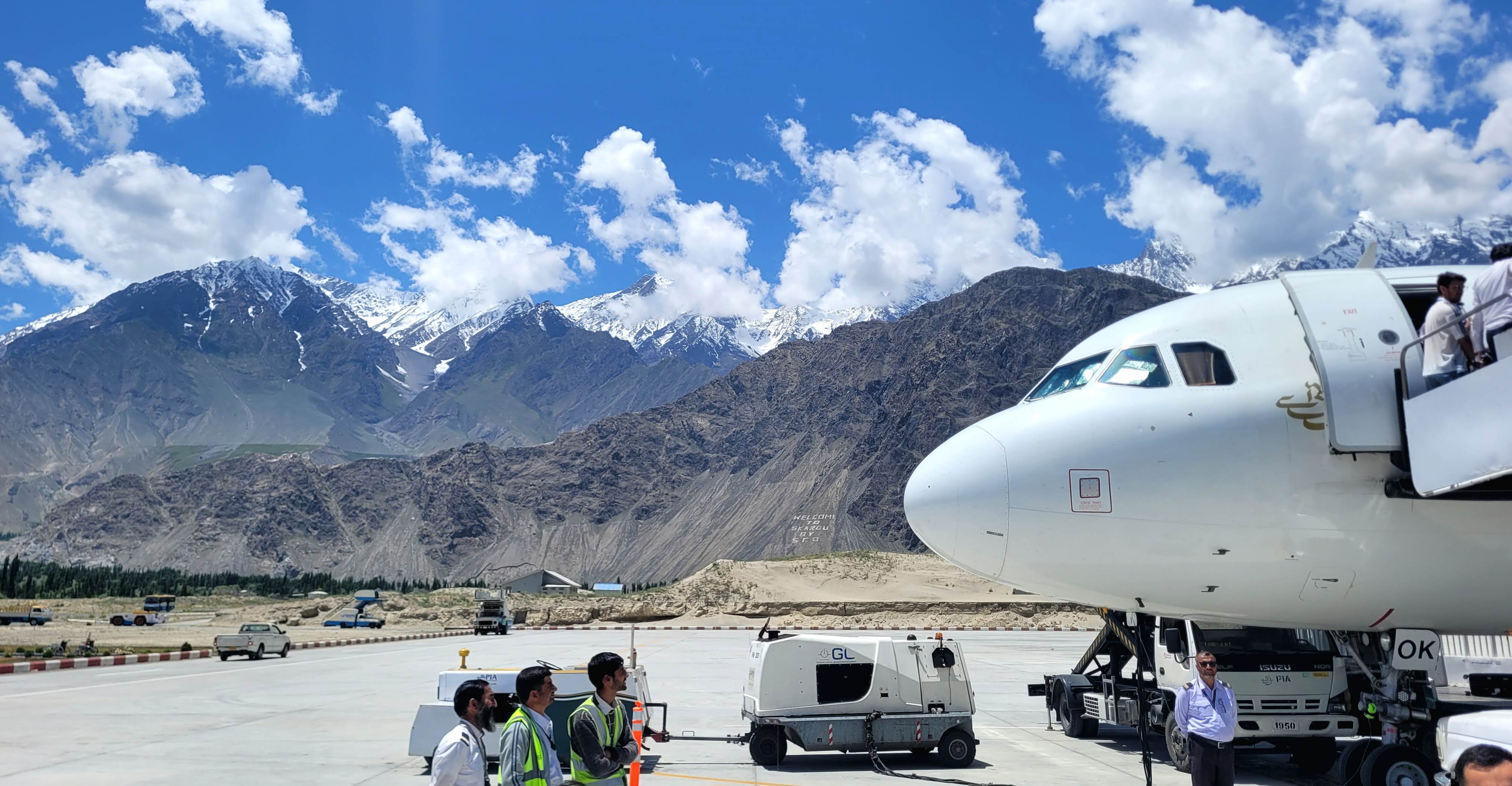 The flight to Skardu was unreal! The plane flew right next to Nanga Parbat, an 8,126-meter mountain that towers over everything else. Then we flew into a valley surrounded by 4,000–5,000-meter peaks to reach Skardu. The pilot even had to make a few circles around the airport to slow down!