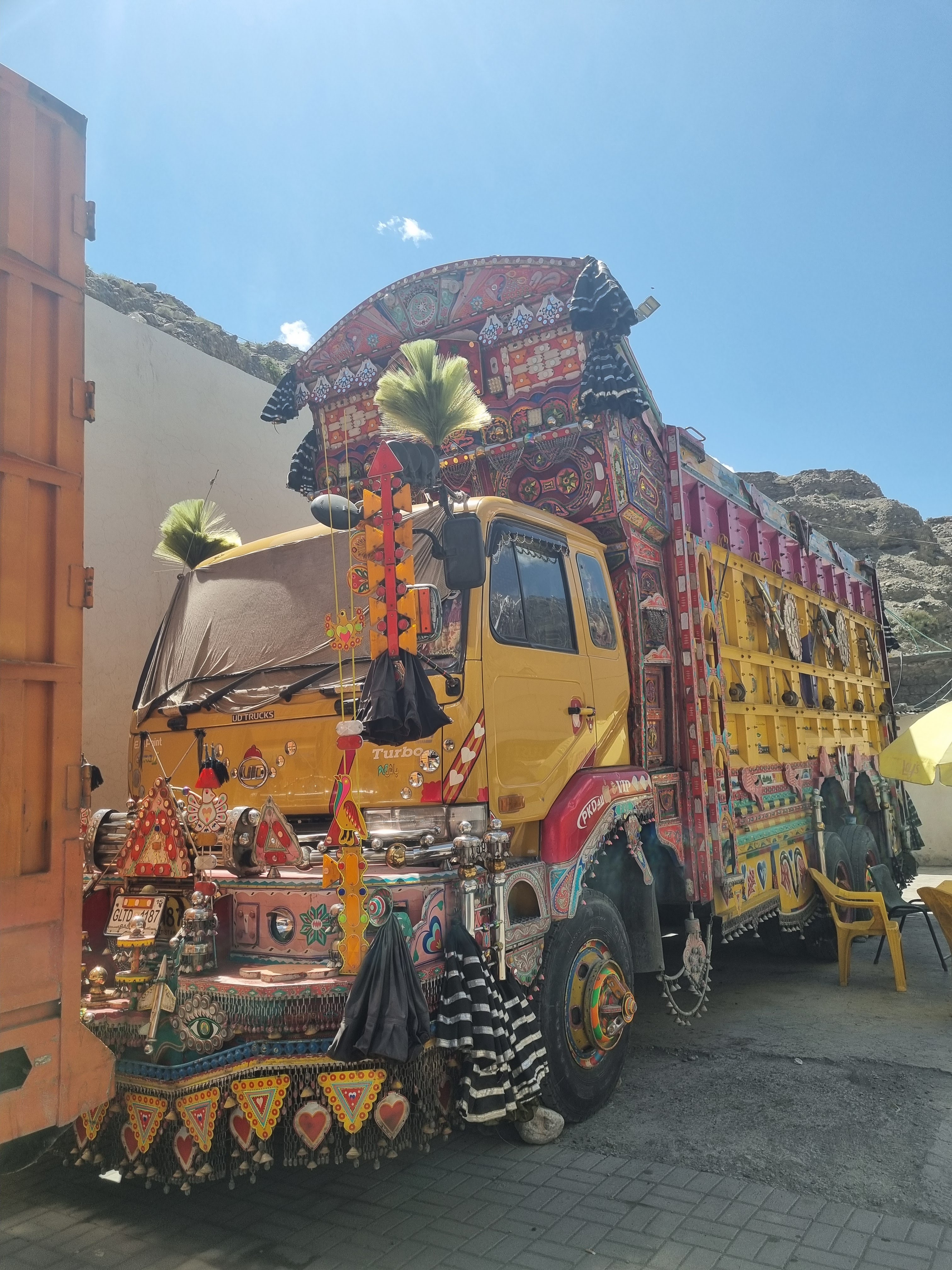 We set off around 9 am after breakfast and stopped at a few viewpoints along the way, including the Passu Glacier and Passu Cones. We also saw some waterfalls and stopped for petrol, where we had a chance to check out some of the famous Pakistani painted trucks.