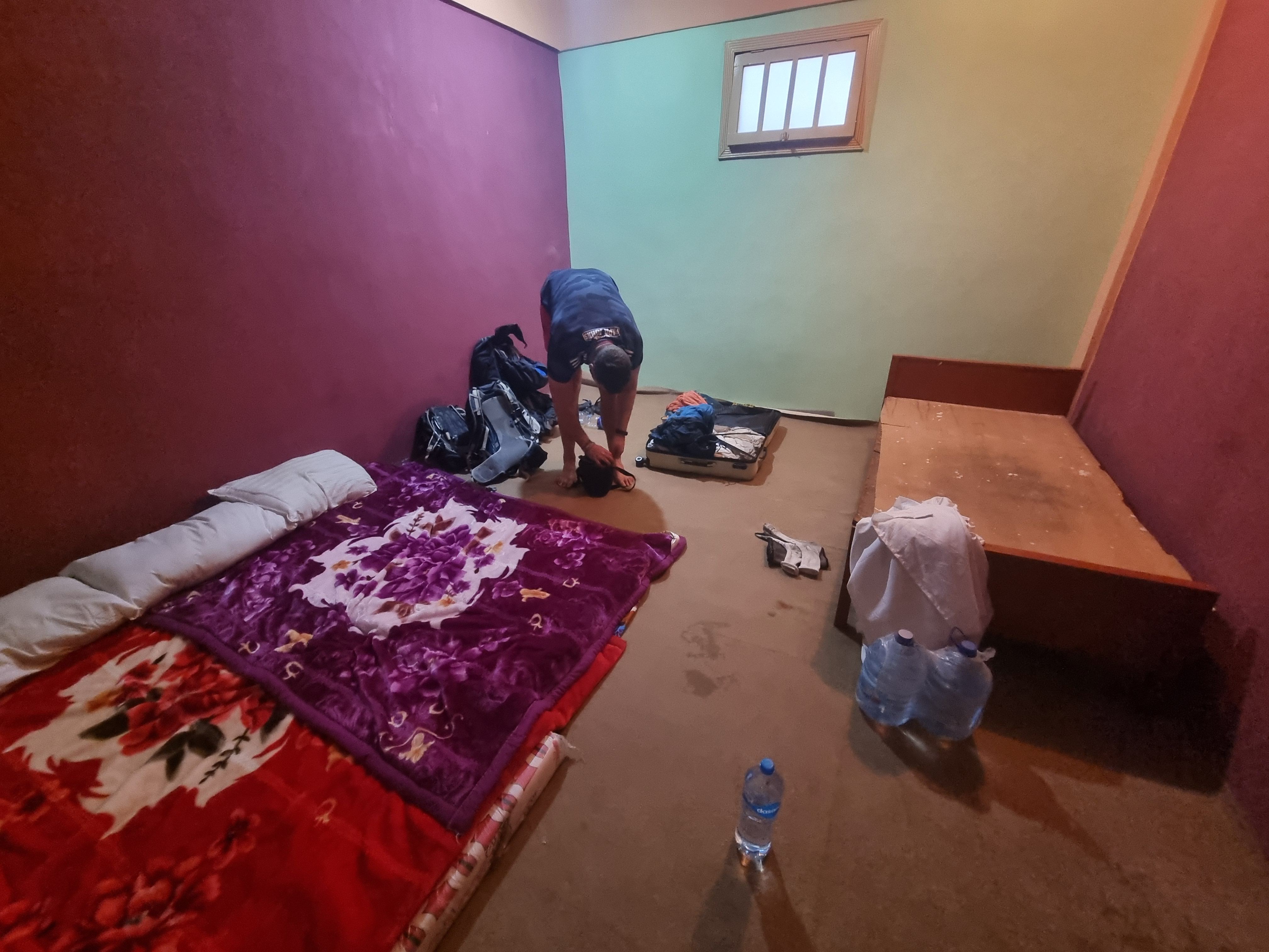 Well… we got what we paid for. The room had two mattresses and only one sheet—which unfortunately featured a massive urine stain. Two of the pillows had red stains that looked suspiciously like blood. The guy running the place gave us new pillows, but no covers, so we used our camping ones instead. We laid the mattresses side-by-side and used the blankets (which were surprisingly clean) as sheets. It was so hot we didn’t need to cover up anyway.