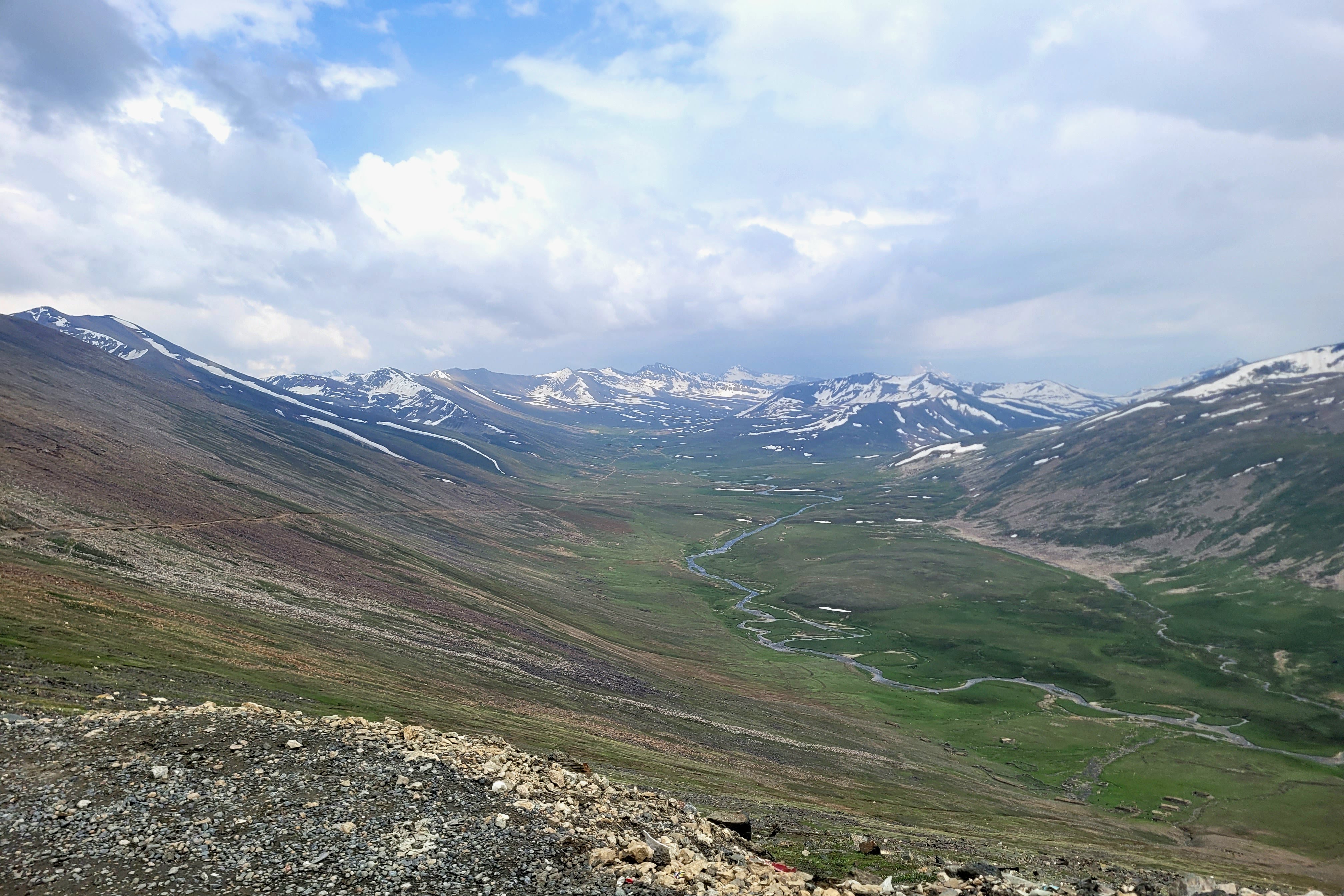 We pressed on toward Yunz Pass, climbing through a steep wadi filled with loose rocks. When we reached the top, the view opened into a wide alpine saddle. This was one of those places that might not look like much in photos but feel epic in person—vast, remote, and quiet.