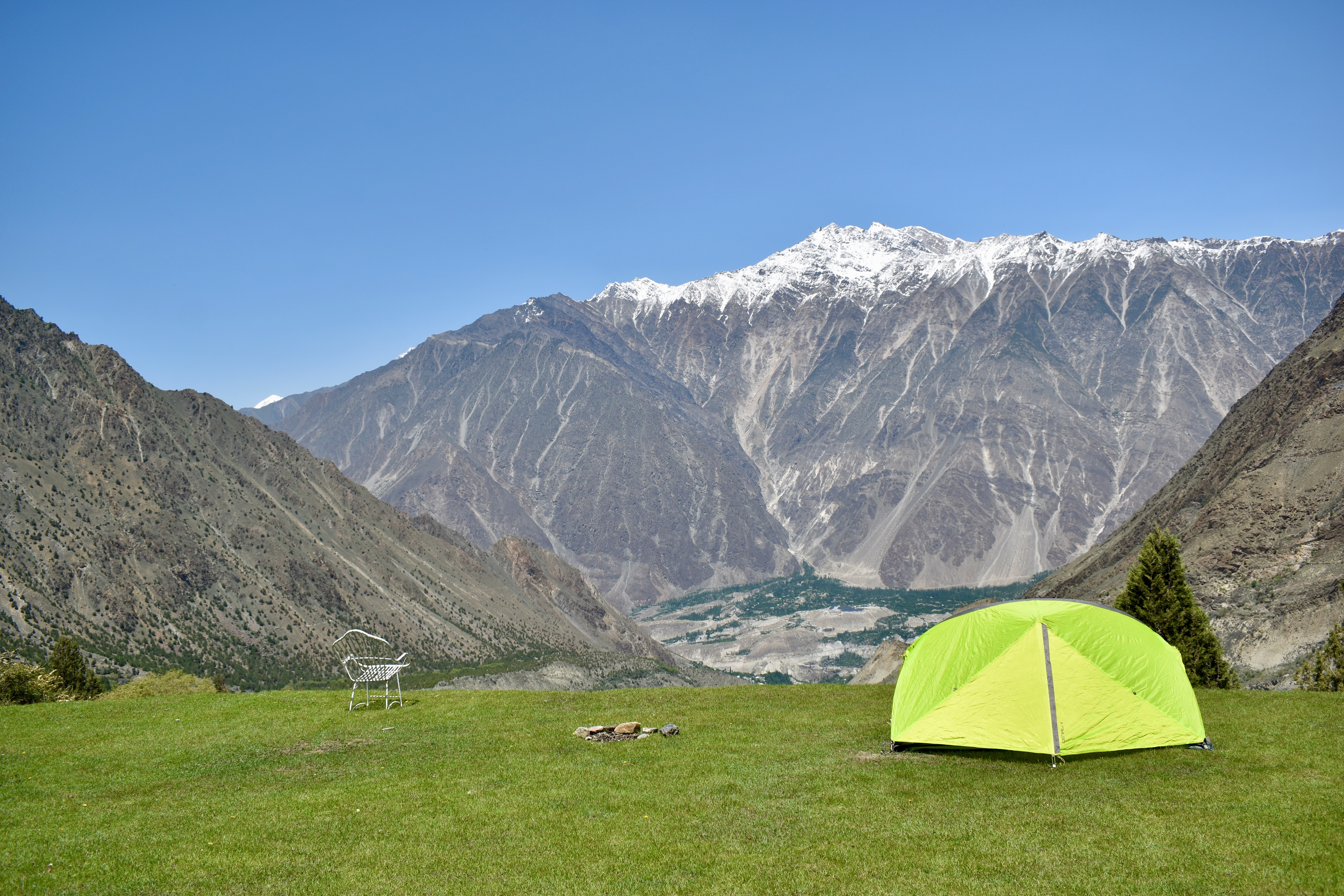 We walked straight to the first campsite on the left and arranged dinner, breakfast, and a camping spot for only 4,000 rupees. We pitched the tent, left everything we didn’t need inside, and continued hiking up to Rakaposhi Base Camp.