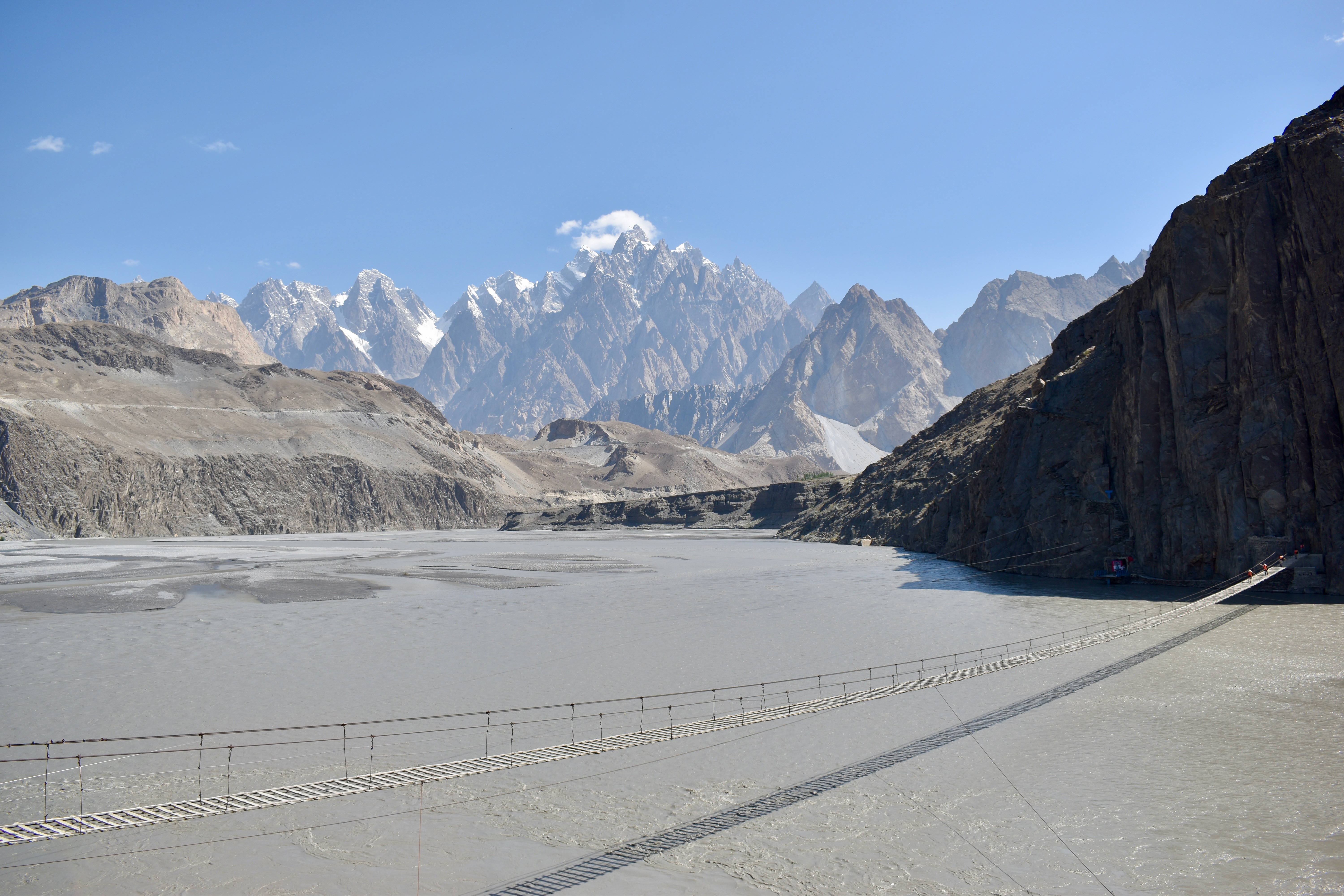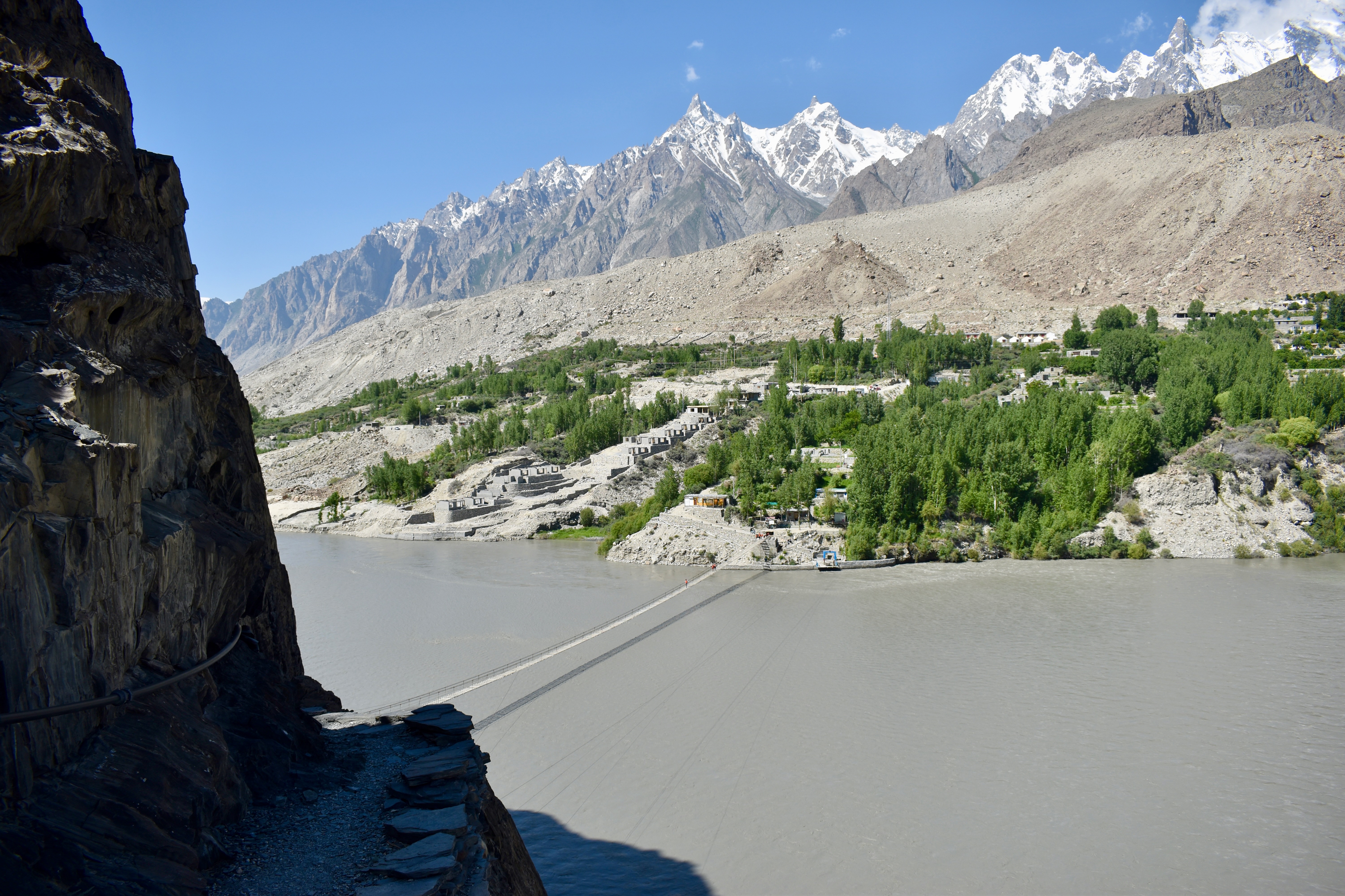 The fella managing the bridge asked if we were doing the full hike. You can cross the Husseini Bridge, walk about 5 km on the other side of the river, and cross again via the Passu Bridge—which is reportedly a much bigger challenge, with no safety ropes or supervision.