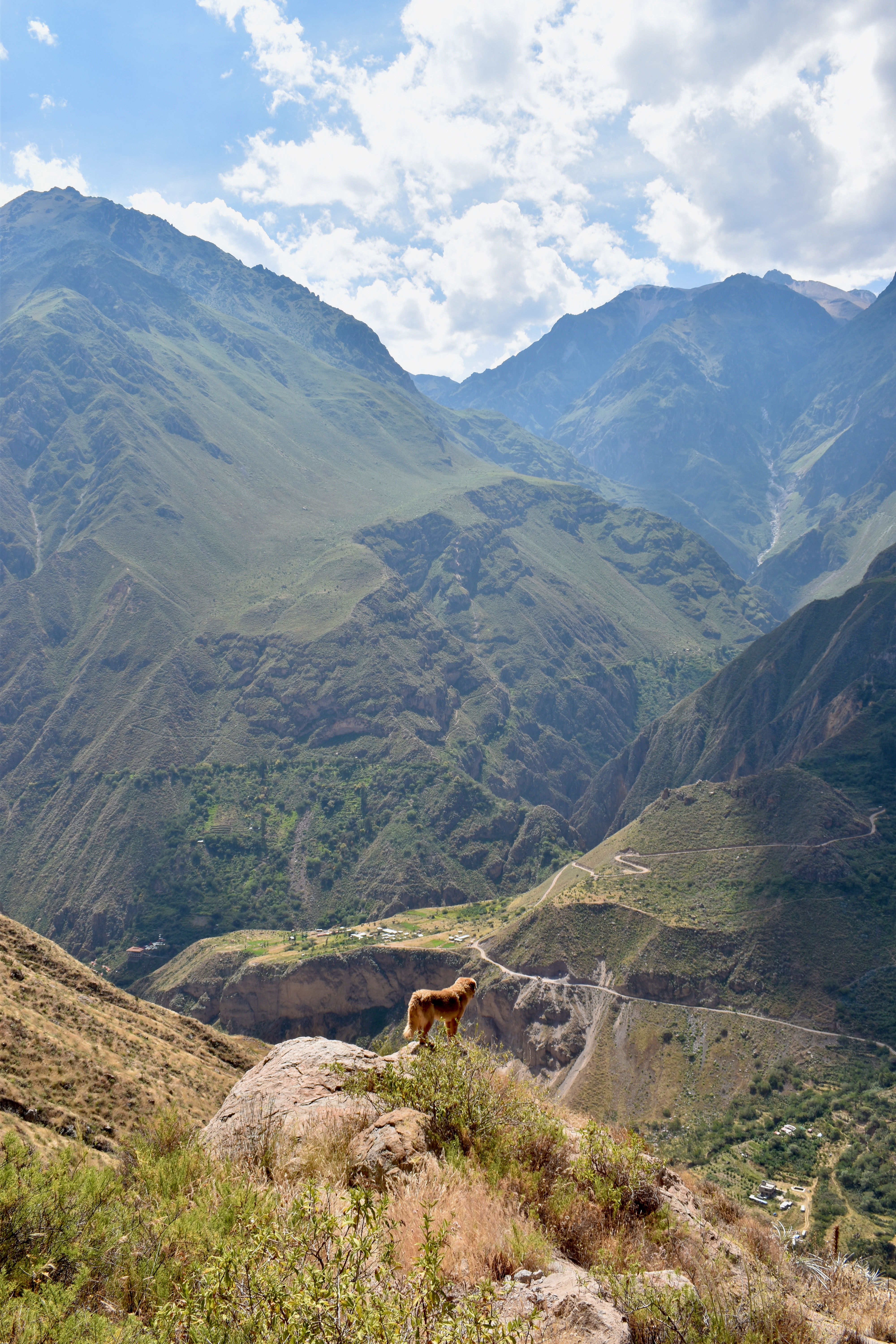 We had a dog companion on our way that always appeared out of nowhere and posed for photos, so we called him Mufasa. Since we hiked down to the Colca Canyon, the whole track was downhill but it still took us 4 hours to reach the Llahuar Lodge. This is one of only two accommodation options in this part of the canyon. We got a private bungalow with a shared bathroom for 50 soles and ordered dinner for 36 soles.