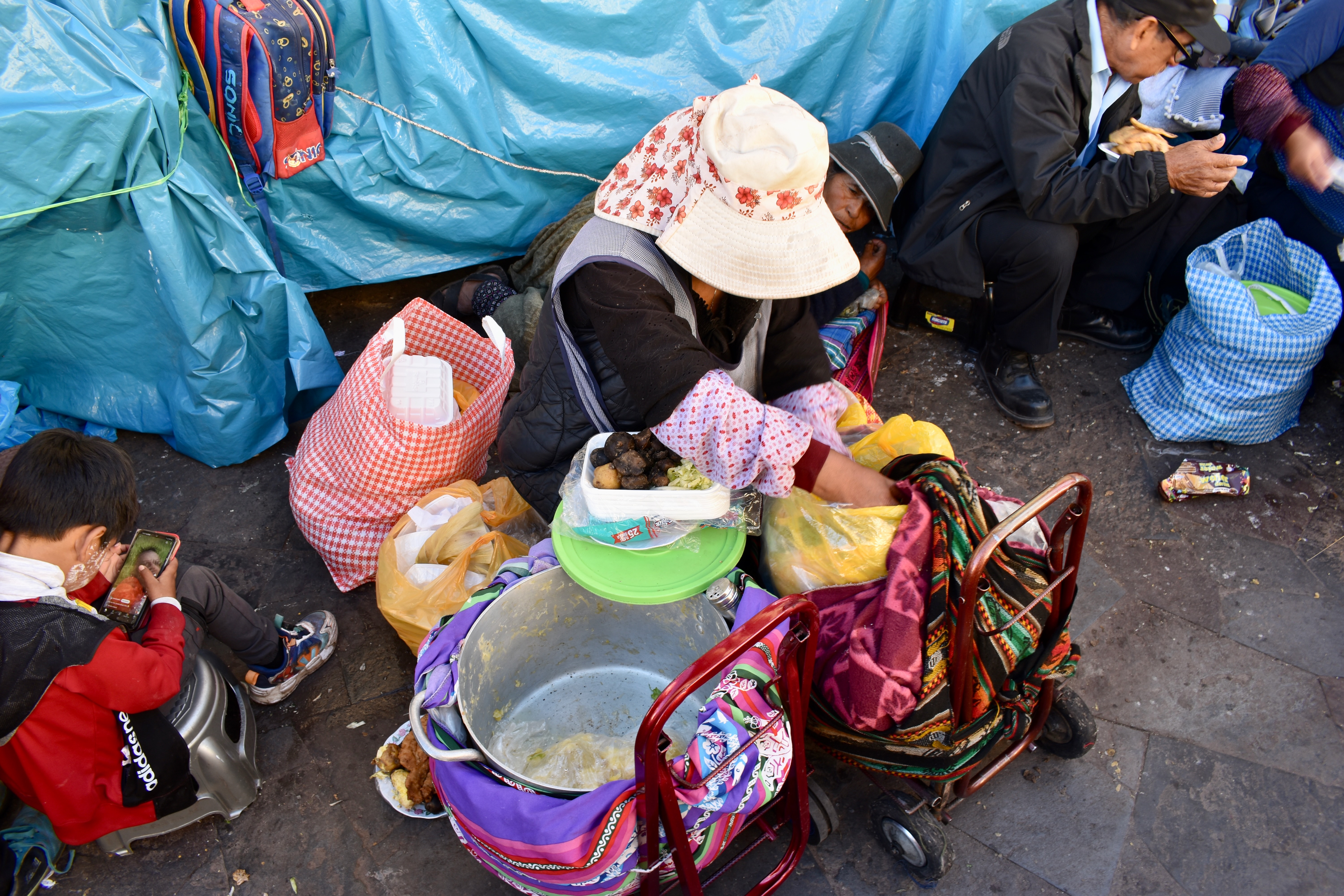 We arrived in Cusco at 7 am, 2 hours later than they advertised but we didn’t really mind since we just wanted to go check in to our next accommodation. Our check-in wasn’t until 10:30 am but the lady let us leave our bags there early. We then went to buy a small breakfast from a street vendor, ate it in the park, and observed some workers’ demonstration.