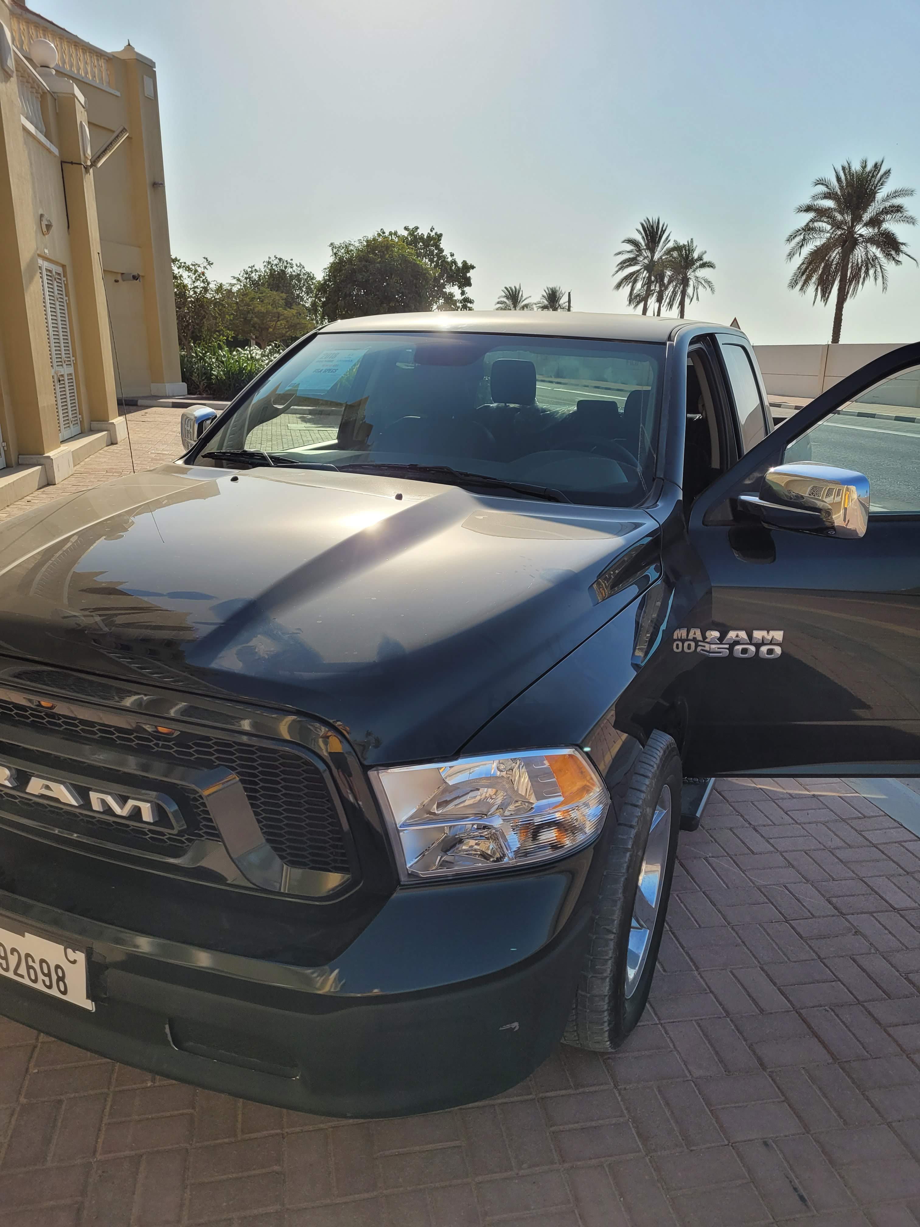 That was when we had an idea to check Ajman. Right away, we spotted a Dodge Ram that looked perfect and drove to check it out the next day. When we got there, the car wasn’t even washed yet. The fella (car dealer) told us that he just got it recently from the US, and it was just sitting there because he didn’t have time to look at it. I think it was love at first sight. We liked how it drove and agreed with the dealer on some fixes. The price was also perfect because it was about 40% of the Tundra prices since the RAM was only 2×4. We bought the car by the end of November, just before my parents came to visit us, so it was a wee surprise.