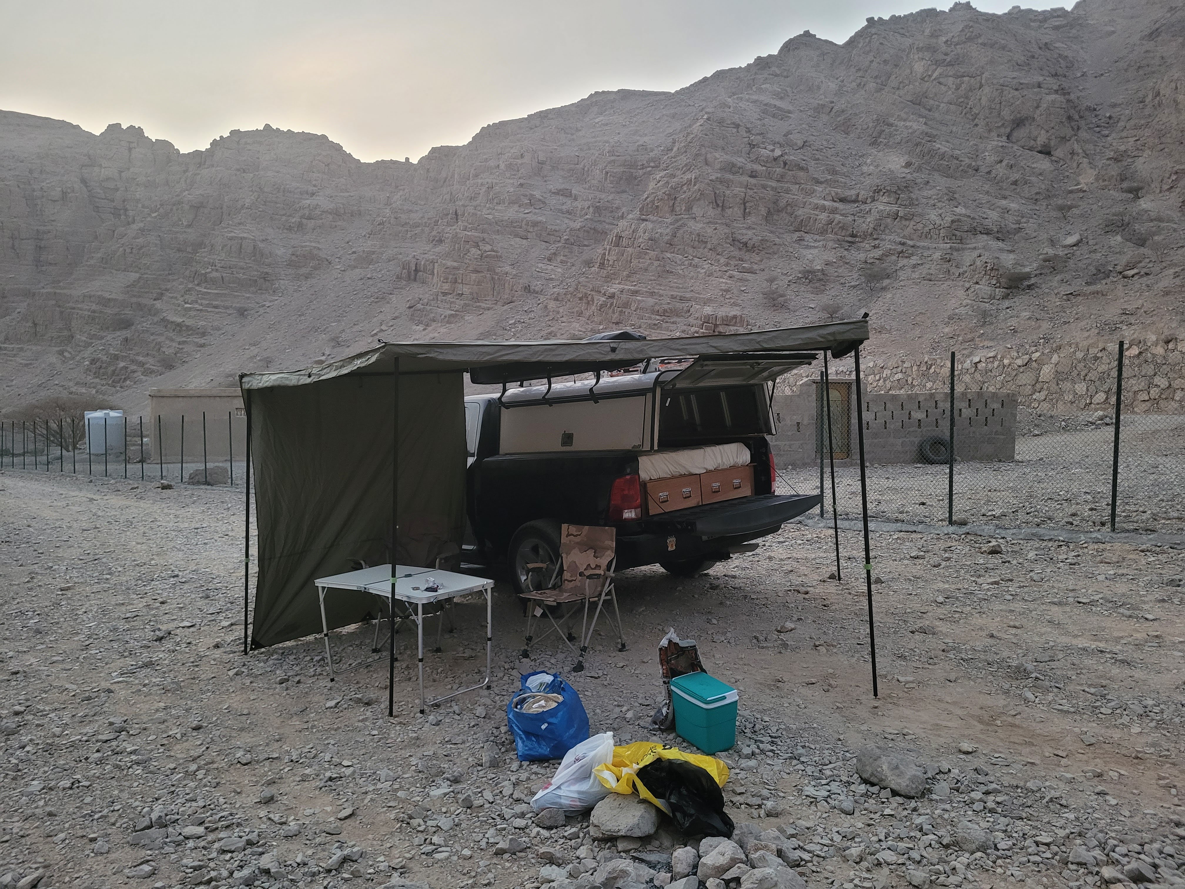 However, we talked about it on the way back home, and Clare made some great points about the low chance of finding the exact size. On the same night, I went to re-measure the truck bed, and I made a note of the measurements of the shell. It would overhang a bit and needed a narrower bed, but we were back at the scrap yard the next day. The other point that was in favor of this shell was the fact that we got quoted 14,000 AED for a new one, while the fellas sold us this one for 500!