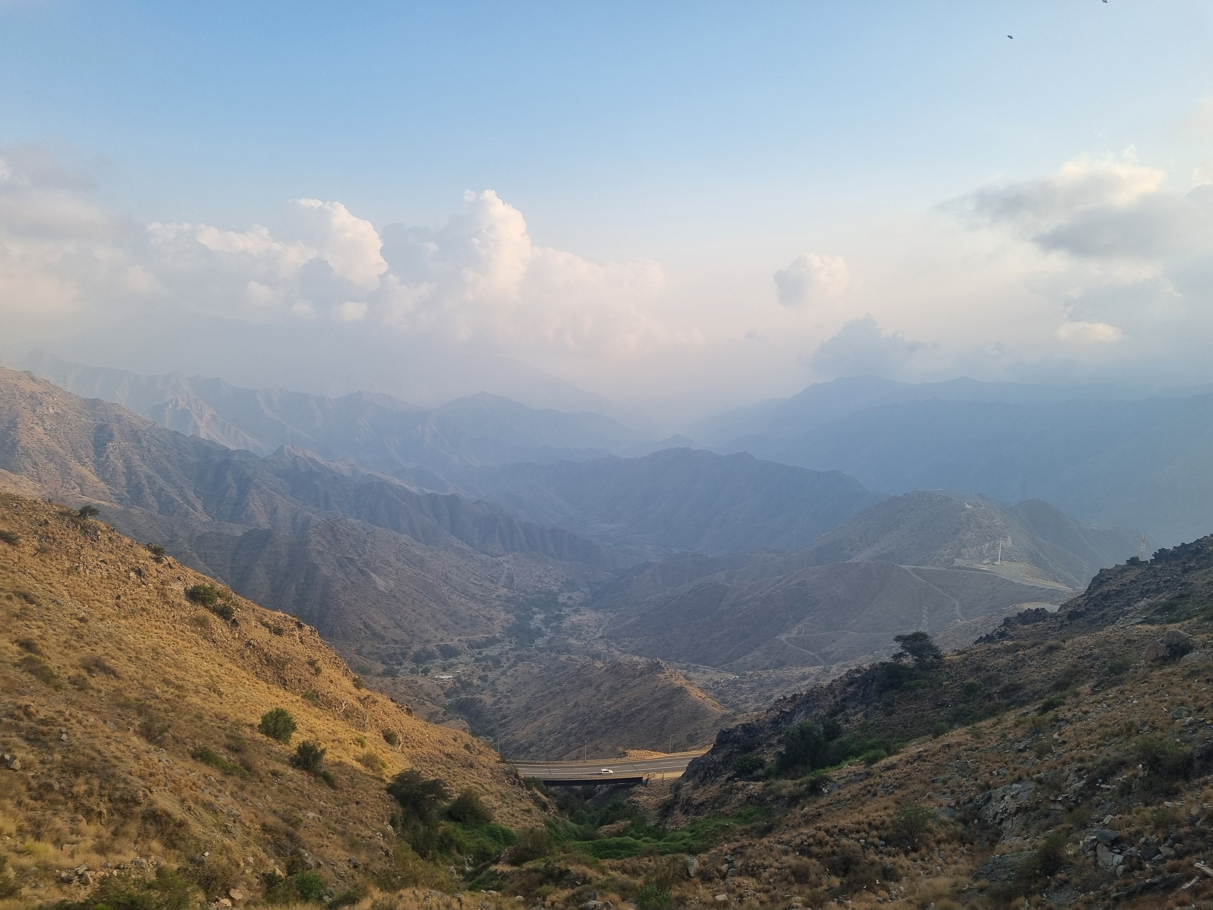 Nevertheless, we had a nice walk, bought some snacks along the way, and stopped for coffee. We then drove above the town to the Dabbab Walkway. I was actually surprised by Abha at the beginning because it didn’t really look as mountainous as I imagined. But when you get to the edge, you get the view of the valleys on the other side and you suddenly understand that you are indeed at above 2200 meters above sea level.