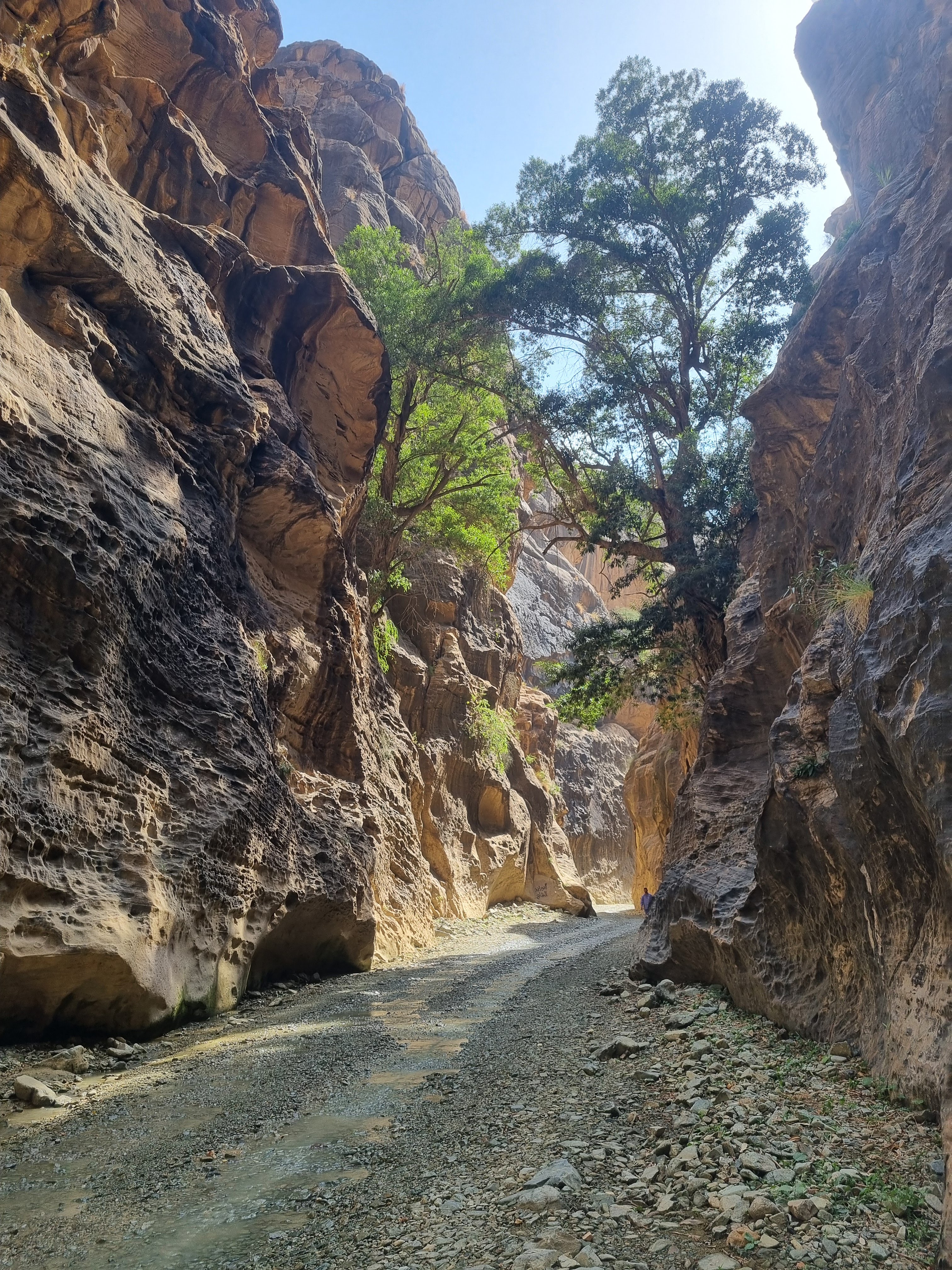 Wadi Lajab was then about another hour away. You can drive into the Wadi for about 1.5 km if the water level is low but we didn’t want to put Mickey through more stones and dirty paths than we had to so we walked. Which I would suggest is the better idea because the beginning of the Wadi are very narrow tall walls that look amazing and remind me of the entrance to Petra in Jordan.