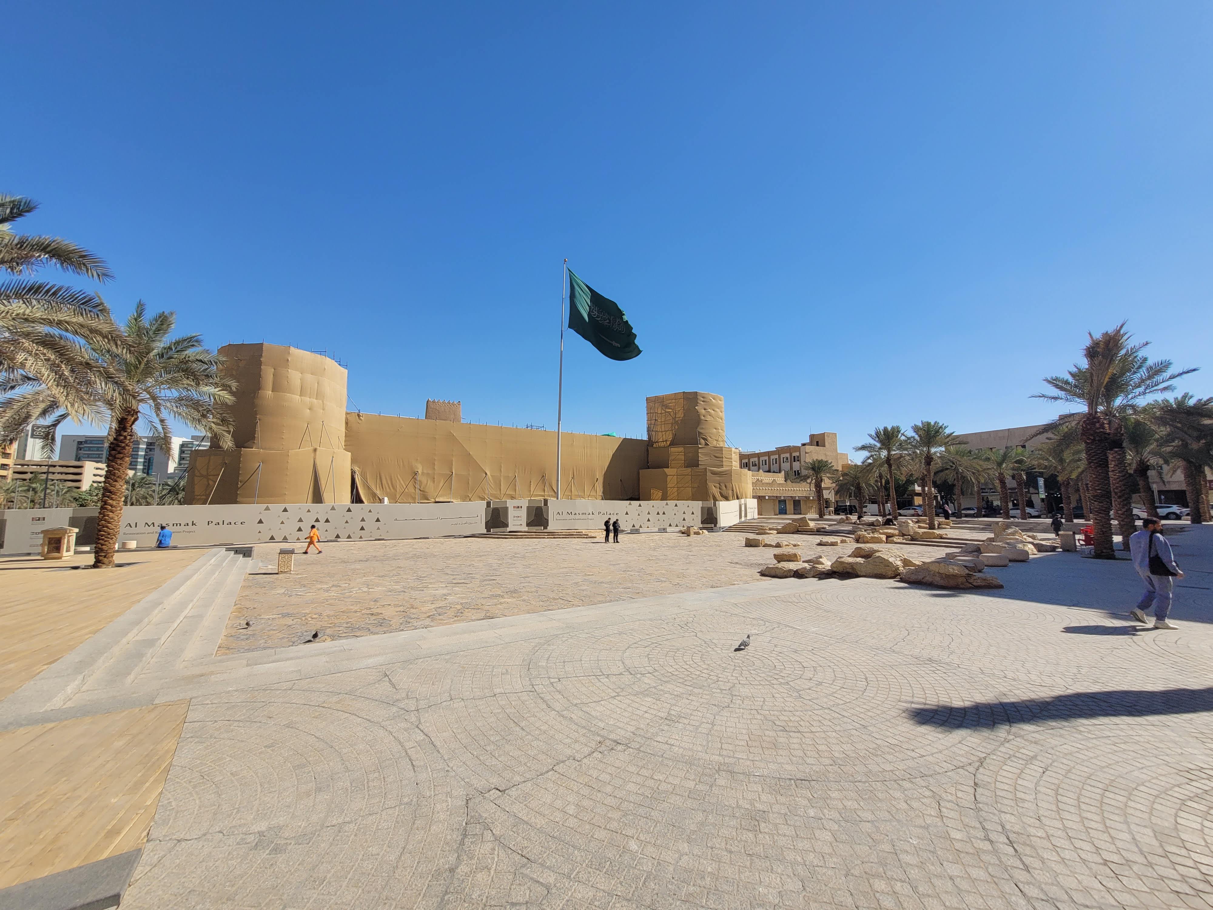 Our next stop was then the old city center of Riyadh. We walked through the souqs (markets) and around the grand mosque that was otherwise blocked for visitors. Behind, there was the Masmak Fortress but it was being repaired, covered in scaffolding, and closed. We then continued north towards the National Museum and the Murabba Historical Palace. It was Sunday, so even the museum was closed.