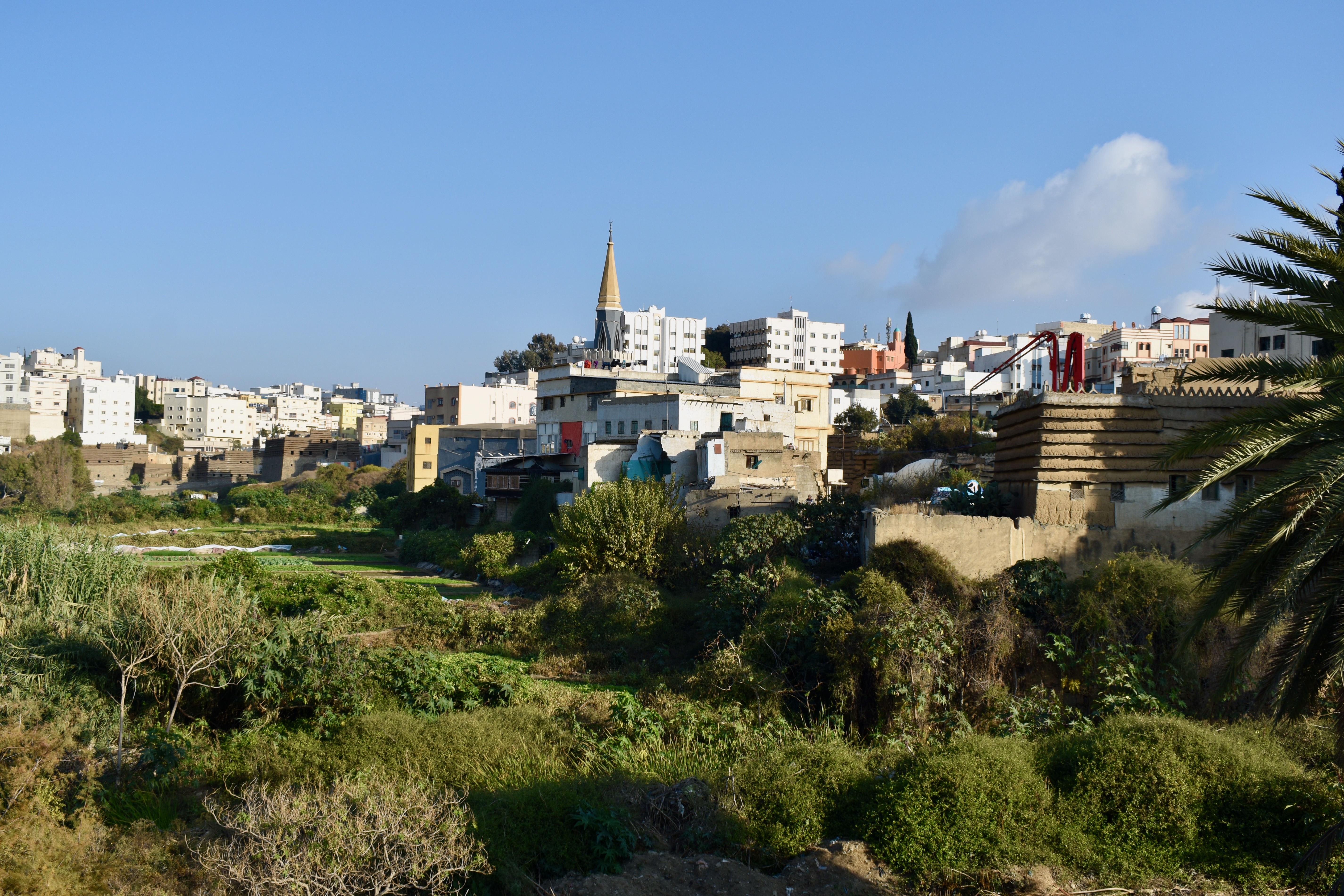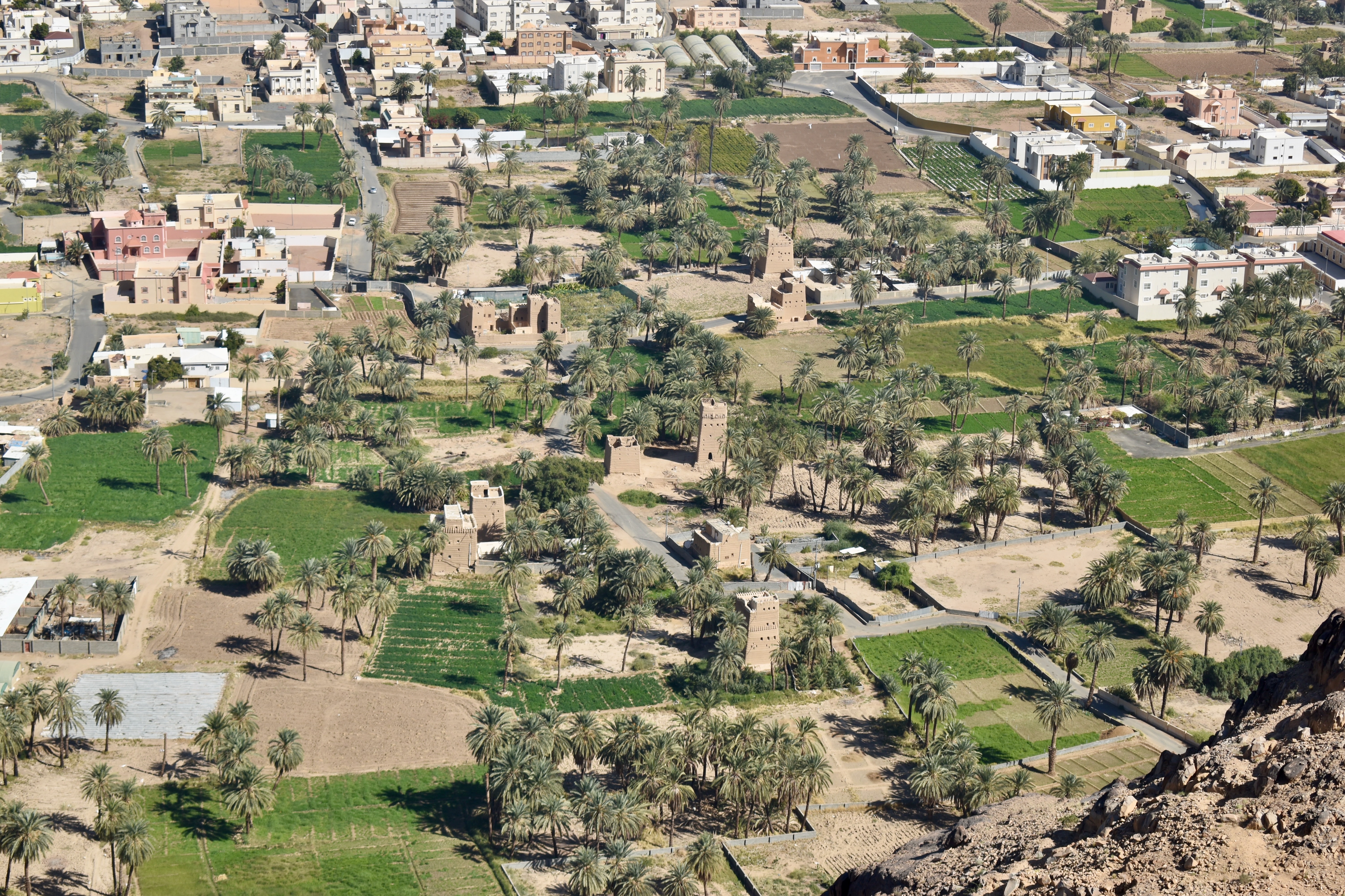 Our next stop was a mound Ra’um with Qal’at (castle) Ra’um at the top. This hill overlooks the city and it looked like a great spot to get a bird-eye view of the surroundings. It is less than 1 km to reach the top but 200 meters in elevation so we rightly expected a lot of stairs. It was also the midday heat and we were running out of water but we were right by the town and felt safe. We reached the top in 18 minutes and could see that even though there wasn’t any water now in the wadi there still were a lot of trees and a water treatment plant so this place must get lush during the rainy season while now it looked like more of a desert.