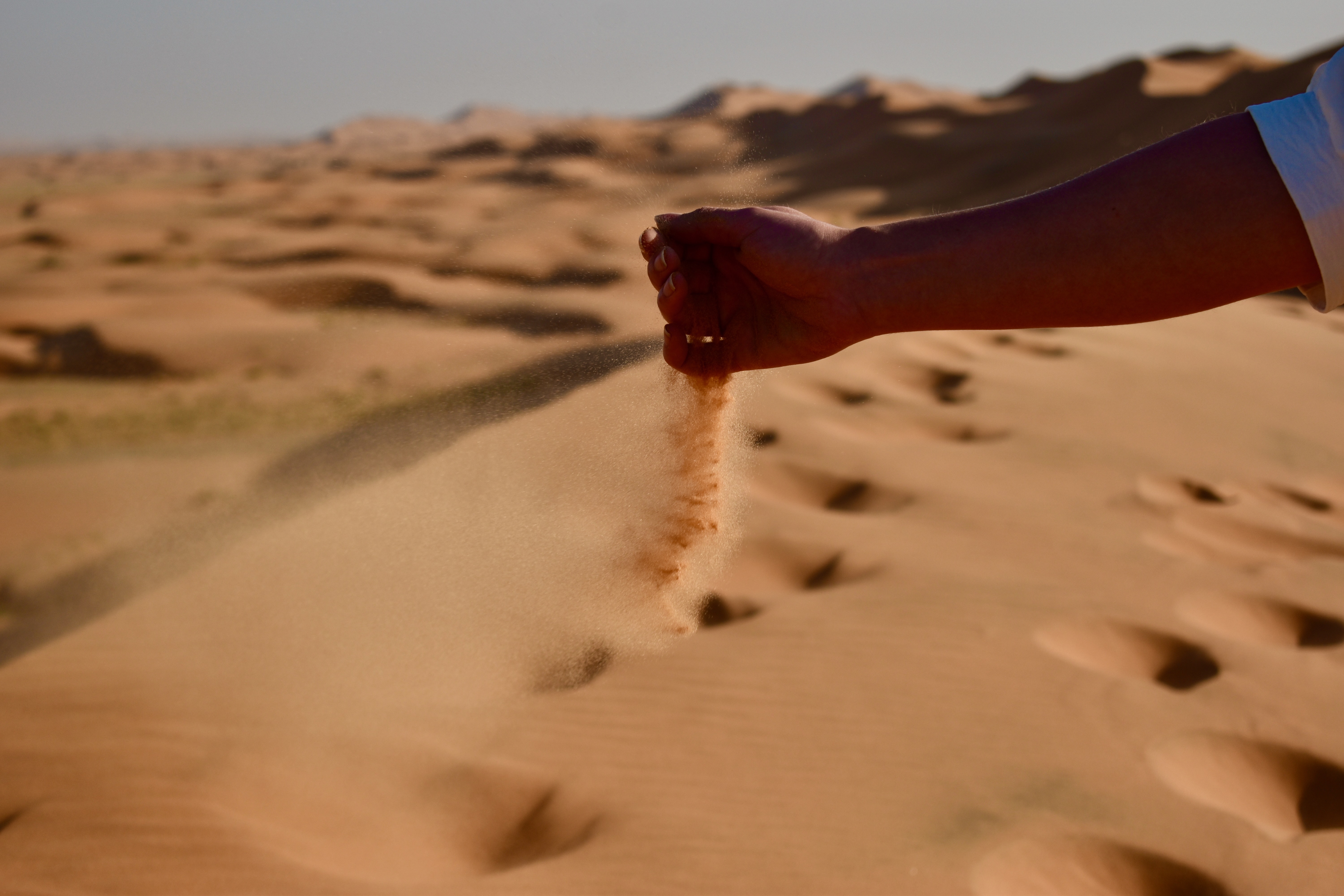 After our traditional coffee in the morning, and a few stares from 3 cars passing by, we were on our way to the ‘Uruq Bani Ma’arid Nature Reserve. This place is located on the top of a flat-topped mountain (mesa) and is known for the big sandy dunes there. We drove directly to the dune that appeared in front of us when we reached the top and went for a walk in the sand. It was nicely cold and soft, like what we knew from the UAE. We spent about half an hour there walking and running up and down the sand dunes before we drove back to the highway. You can definitely spend more time there driving around but we needed to be on our way north to make it to Riyadh.