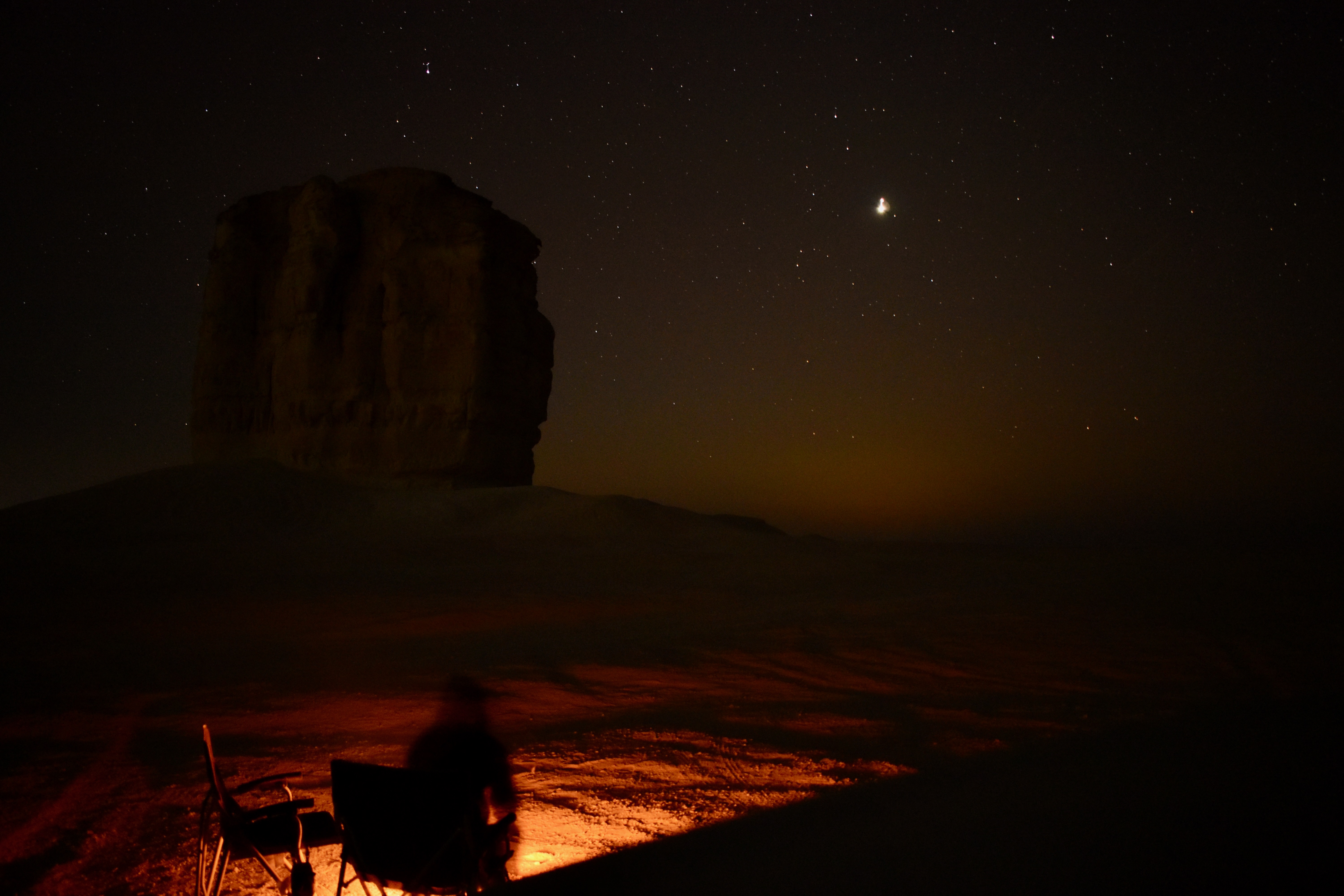 When we reached near the city of Wad ad Dawasir, the road was lit up and there was some more traffic. We stopped right at the first park before the town even started and set up our camp there. We slept in the car with an air mattress in the back and all our stuff on the front seats. Our camping chairs and table didn’t fit in and we didn’t have a roof rack (yet!), so we had to leave some stuff under the car.