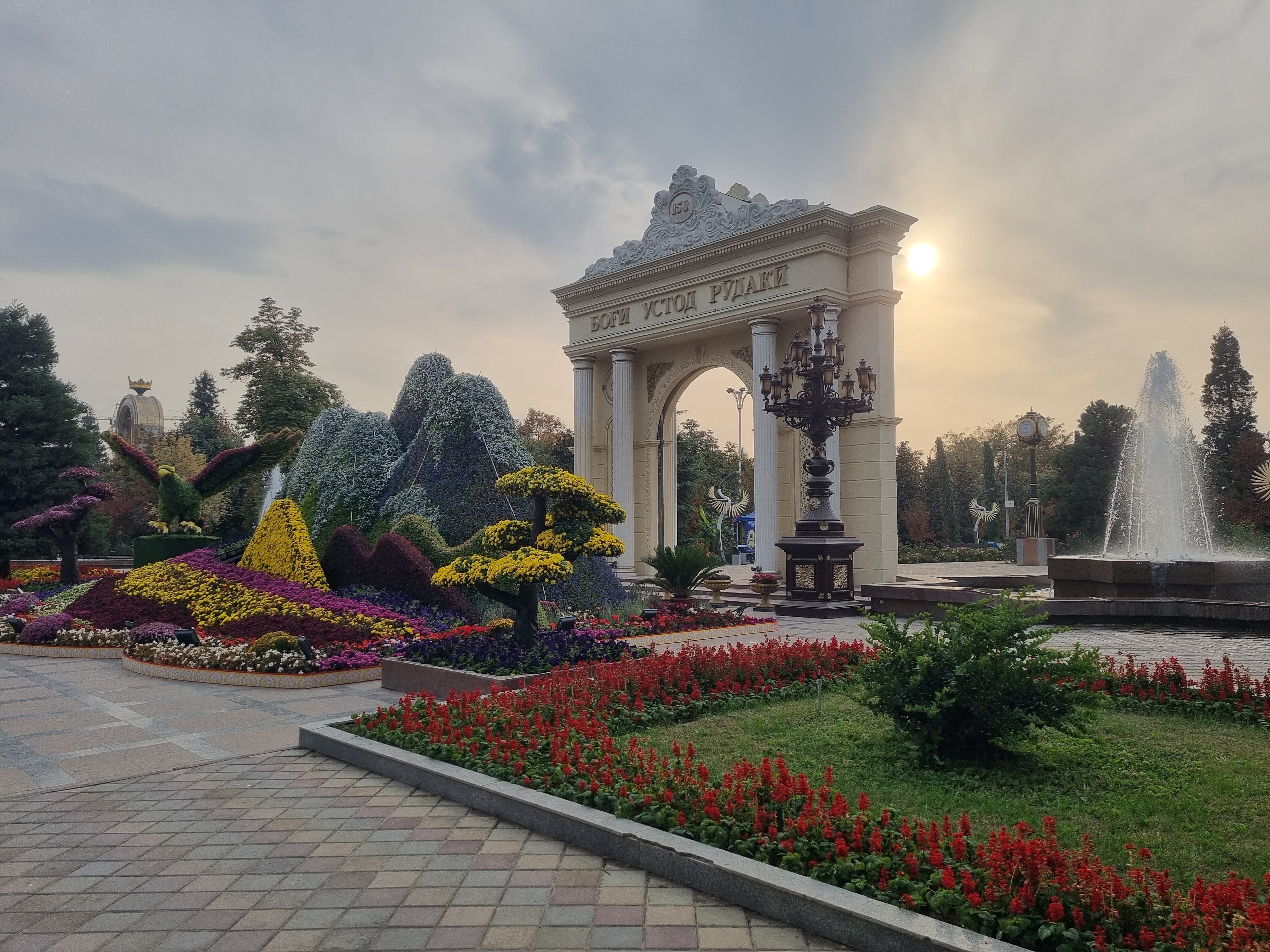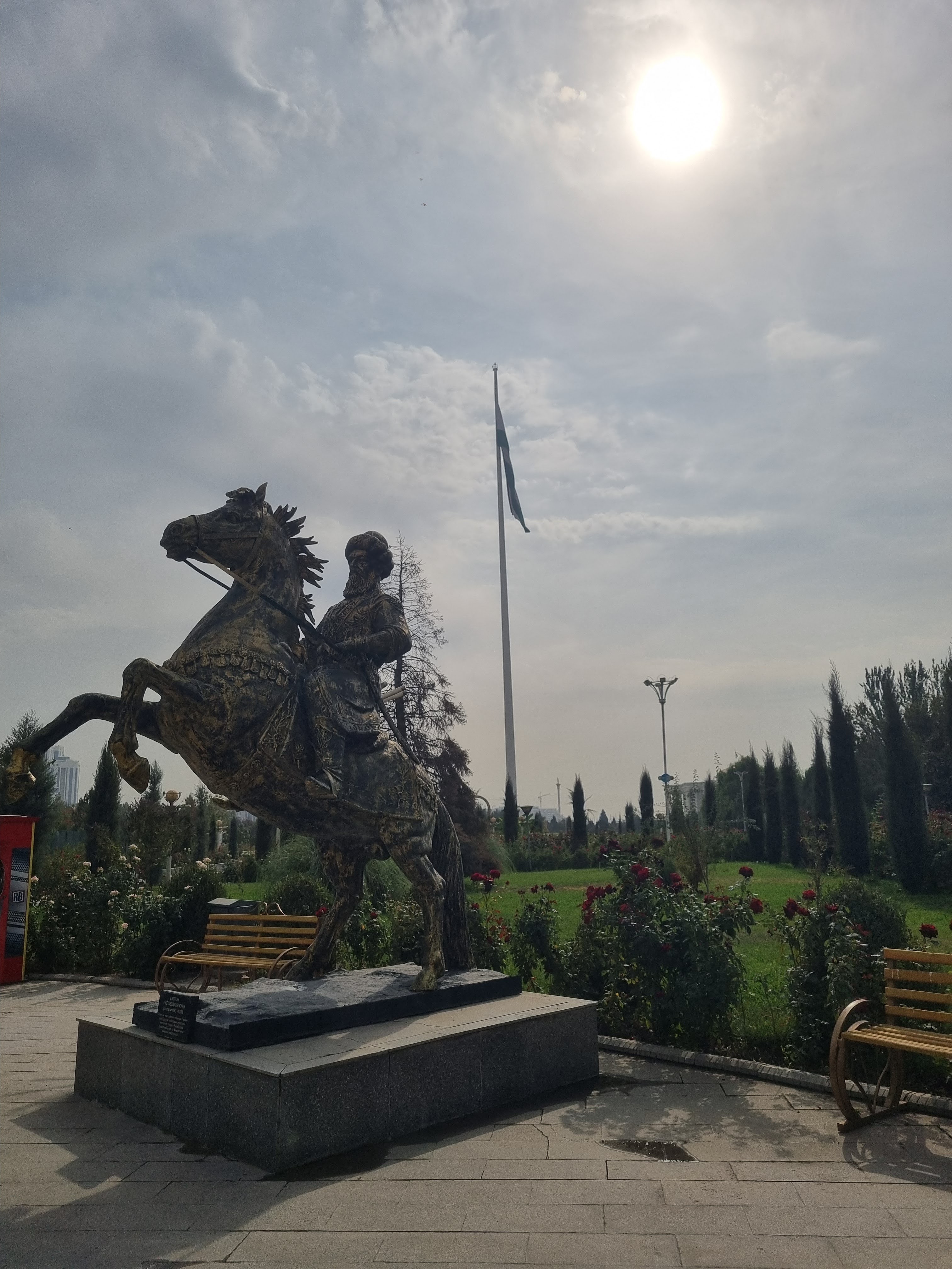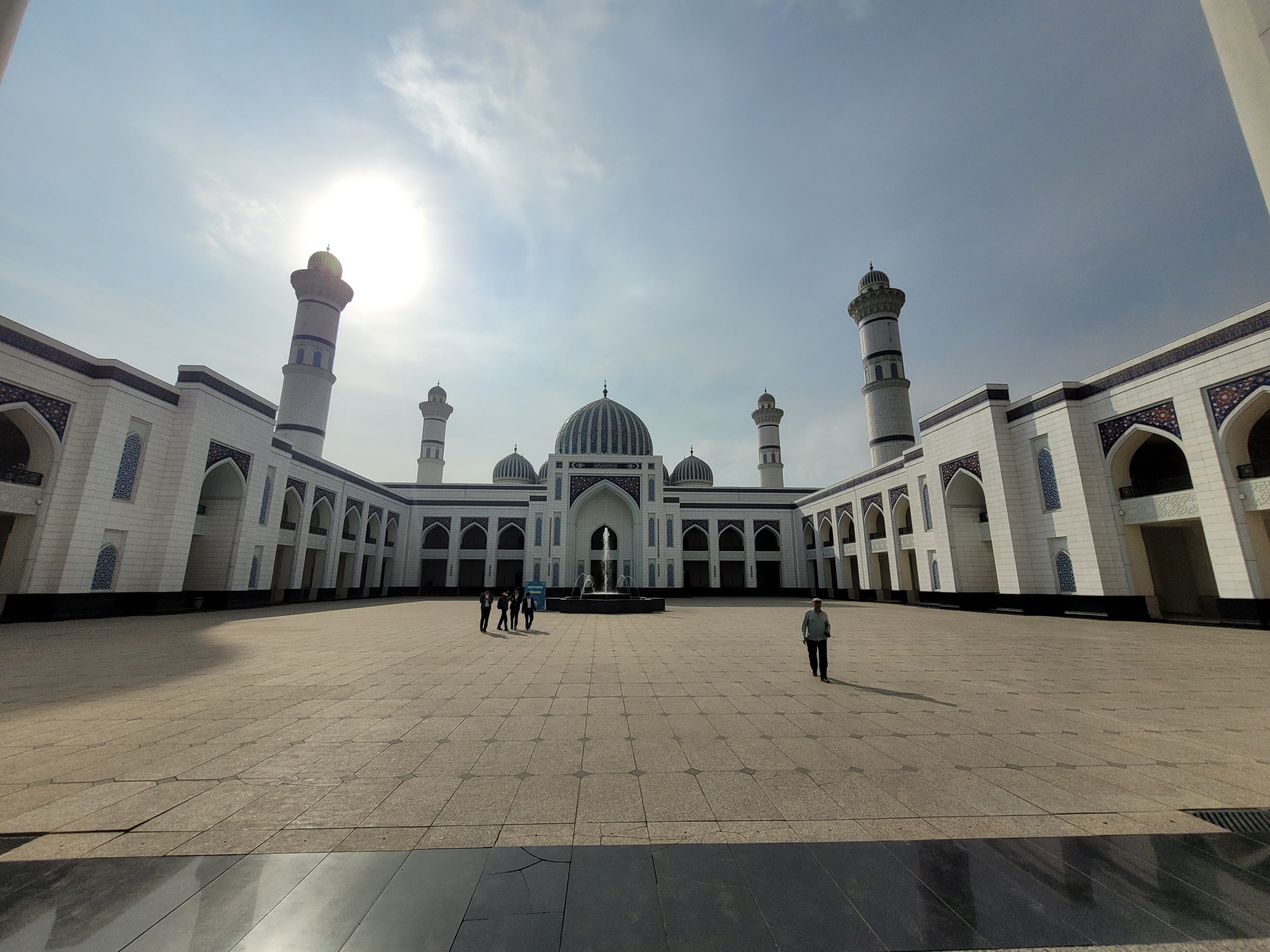 We then took a big detour back to the center by first walking through the sports complex, then stopping at the Central Mosque (absolutely massive), to then finish the loop at the Istiklol (Independence) Monument (also absolutely massive). We were pretty exhausted by then, so we had a long break at the park there. We then passed by the Haji Yaqub Mosque on the way out of the park and got back on the Rudaki Avenue to walk back to our hotel. We stopped for a kebab on the way back and at a shop to buy some supplies for hiking later. We ended up also getting some somsa and baklava for dinner. I say dinner, but it was barely 5 pm – our day was all messed up from the flight.