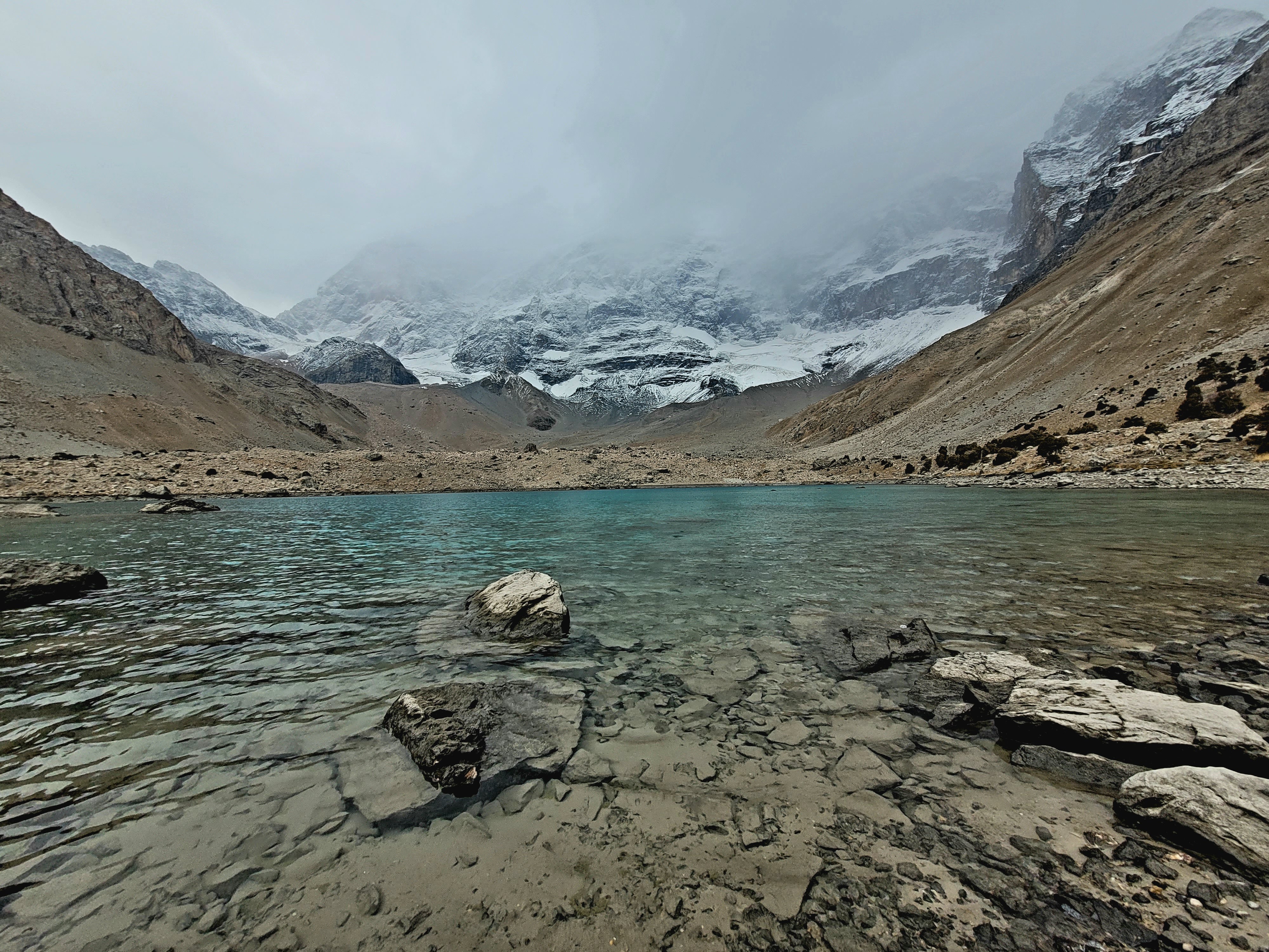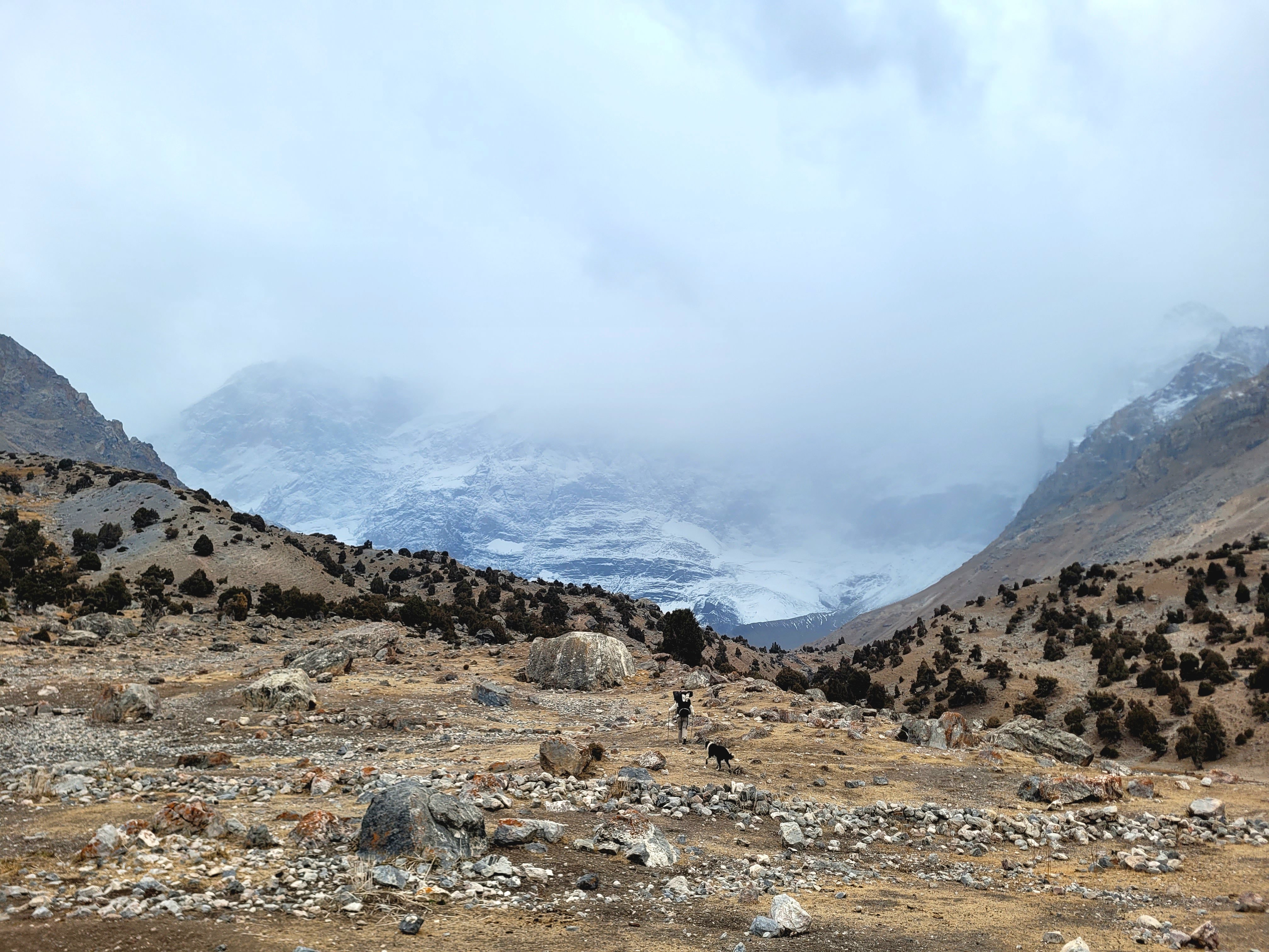 Next, we continued across the valley to the Kuli Siyoh Lake. There was a hut along the way, so we stopped to check if it was open in case we needed a better shelter from the rain. But unfortunately, the hut was closed. Once we got to the lake, we turned South and headed to Chimtarga Lake. That was the last bit of climbing for the day. The whole hike was 10.7 km with just a few meters shy of 1000 ascended meters.