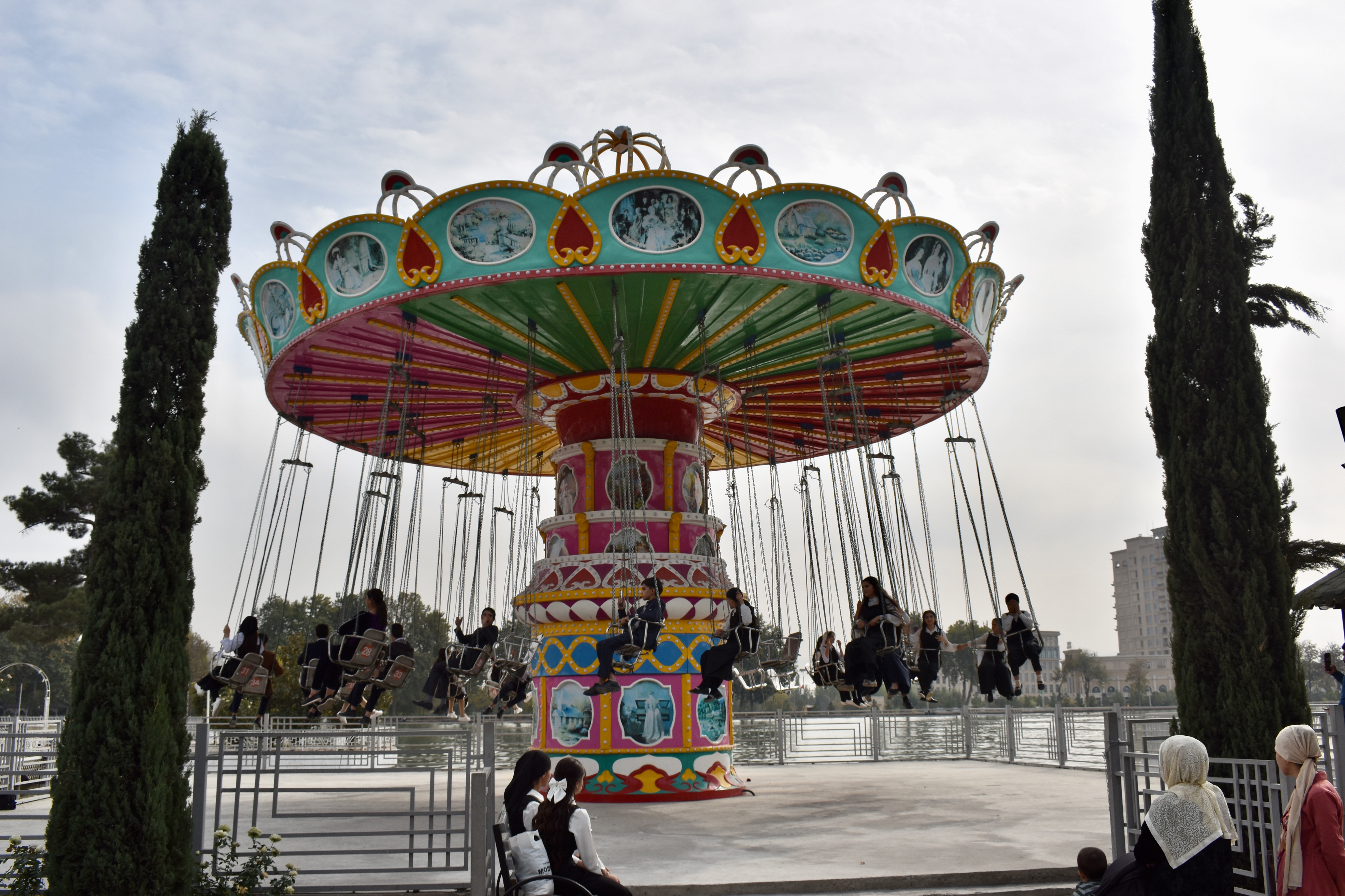 We then crossed the river, walked through an amusement park by a lake, and finished at Kohli Navruz Palace. We read about getting a tea there in the world’s largest teahouse, but it was closed for a wedding. But there was a restaurant next door, so we stopped there for Palau and tea.