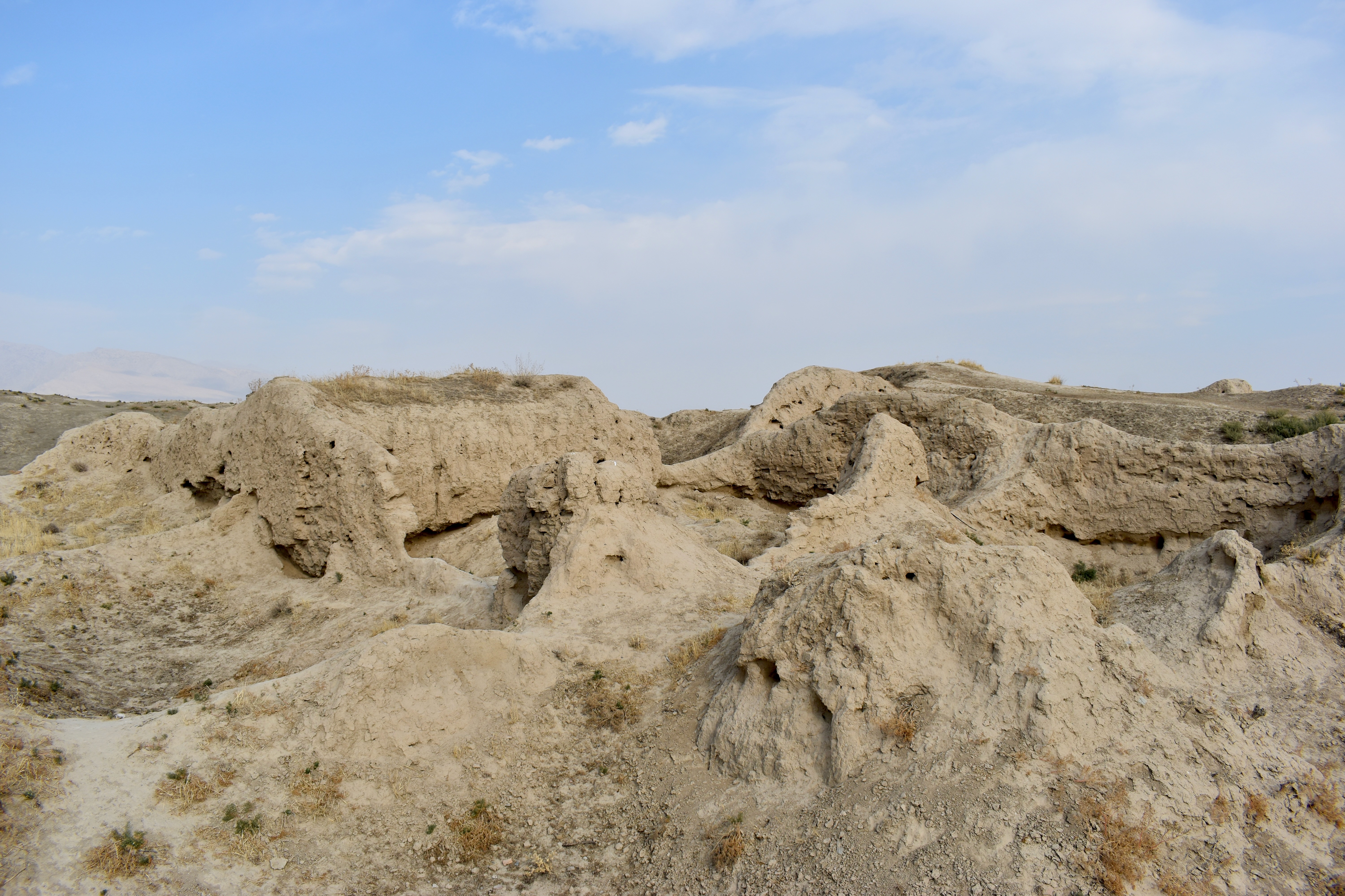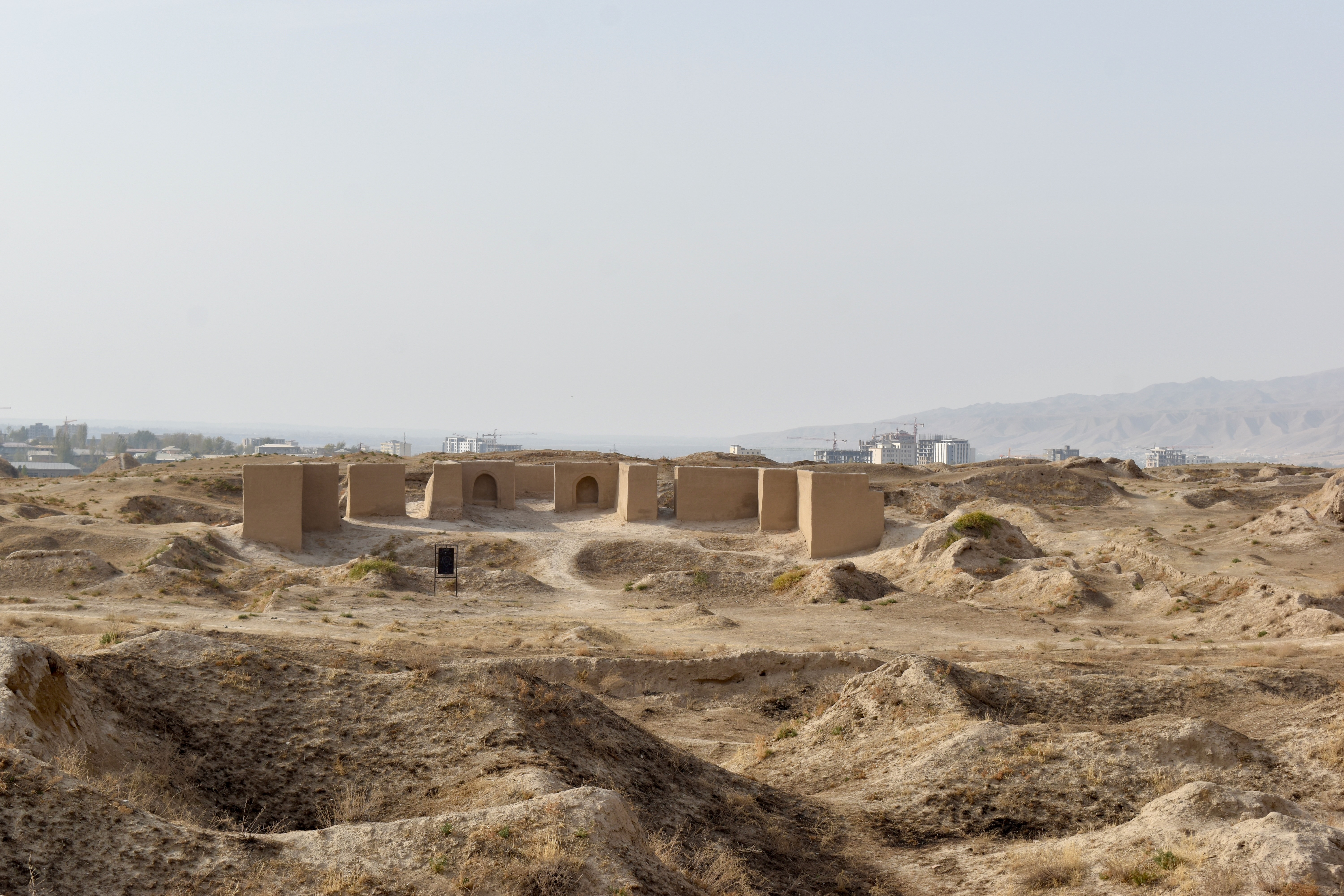 We got dropped off at our hotel, Zarafshon, where we paid 340 TJS ($37) for one night with breakfast. We left our stuff there and went to explore the town before the sun set. Just about 1.5 km walk from our hotel was the Ancient City of Panjakent. It looked like several hills, sometimes covered with old bricks and with a few rebuilt walls. The entry from the town is free, but once you reach the end, there is a museum where you should also pay for the entrance to the ruins. It cost 30 somoni/person. The city used to be part of the Silk Road and dates to the 5th – 8th century AD.