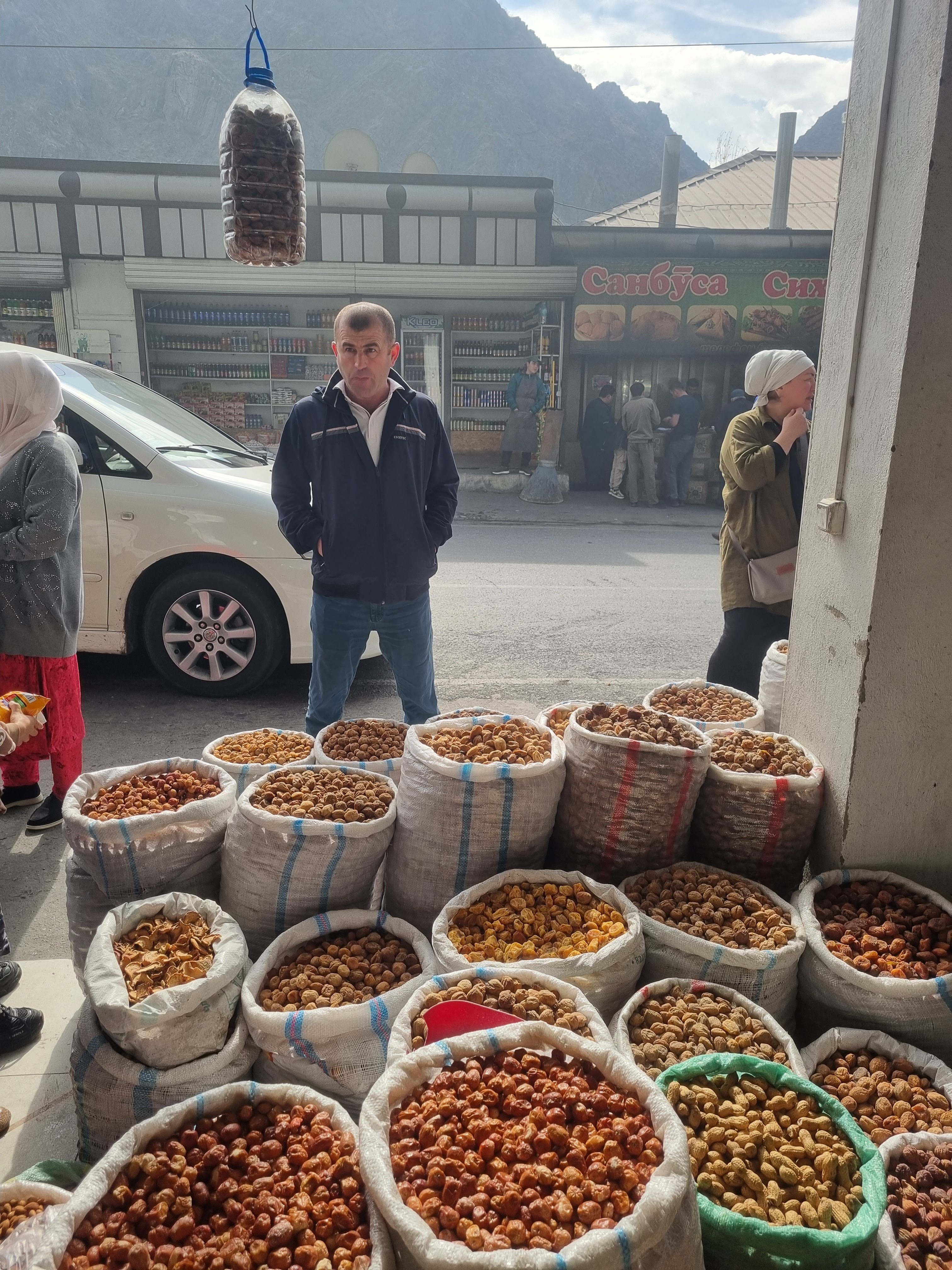 At that point, Big Max showed up (we didn’t know his name by then, but it perfectly describes his physical stature) and offered again 150 and said that he had a full car. He was willing to negotiate, and we agreed on 130 somoni per person. We took our stuff to his 7-seater car and just had to wait for one more person to join us. We got to the shared taxi parking lot around 8:30 am, by 9 am agreed on the price with Max, and left just by 10 am when the car was full.