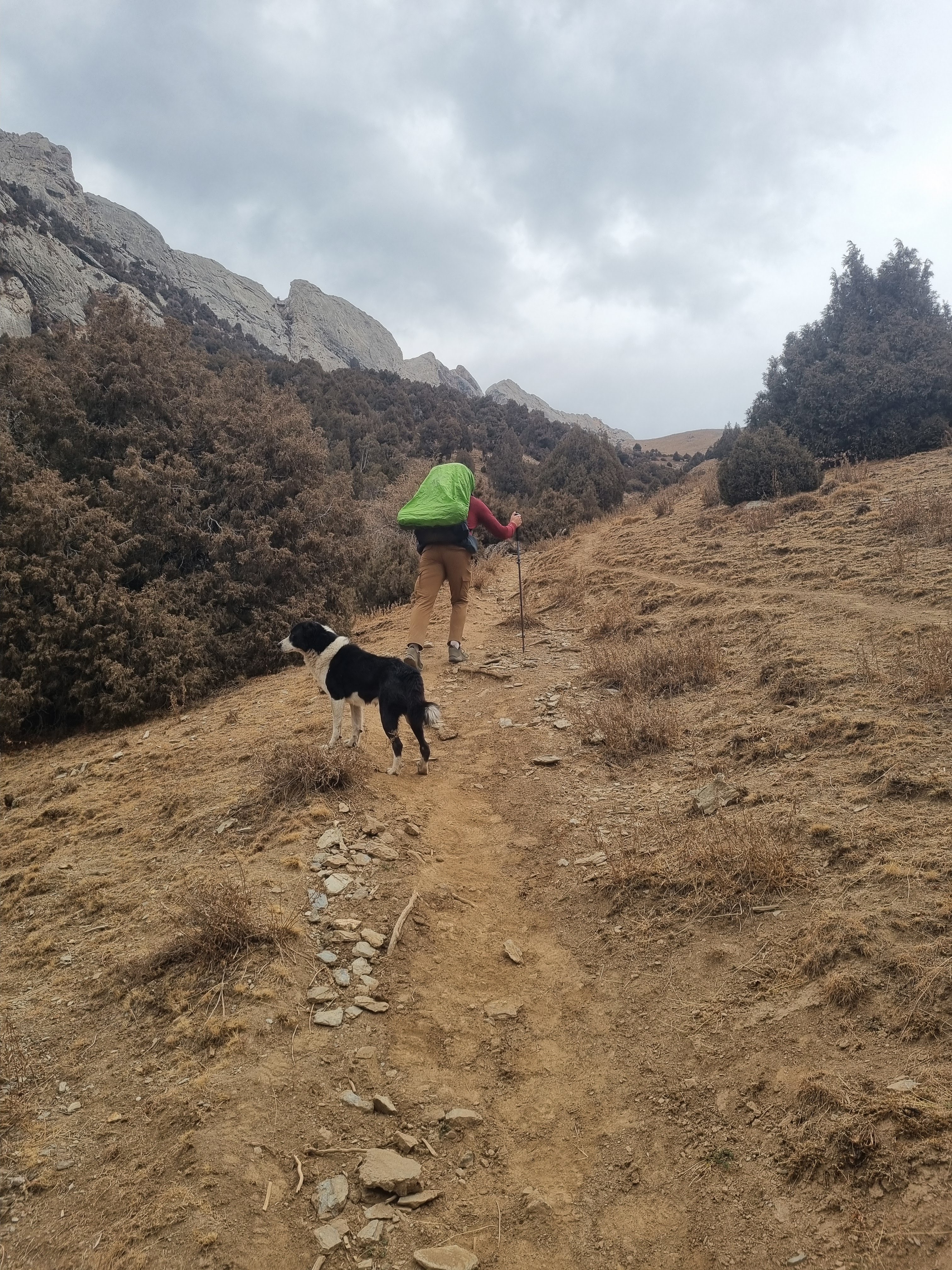We were a bit tired because our bags were pretty heavy – estimating about 15 kg for me and 11 kg for Clare without water – so we were contemplating just staying near the campground, but in the end, we pushed it the extra hour up the hill to the Chuqurak Lake. It was only about 1.5 km away, but almost 350 meters in elevation. Clare also couldn’t help herself and went to pet a dog that was chilling under a tree in the camp. Little did we know that the dog wouldn’t leave us until the end of our hike.