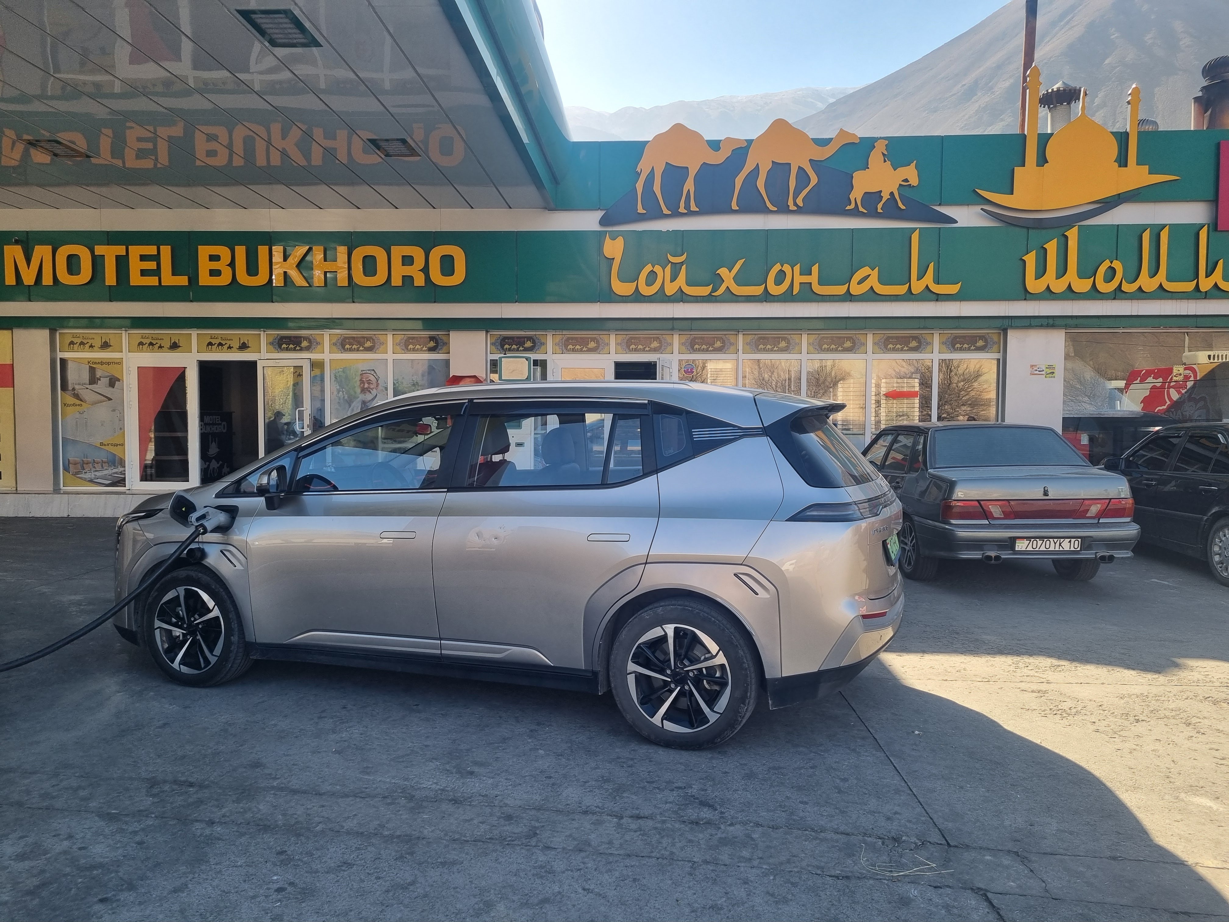 The shared taxi we got from Panjakent to Dushanbe was a fully electric Aion V. Anywhere else in the world, I would be surprised to get a full electric car for a cheap journey like this, but not in Tajikistan. The number of electric cars on the road was staggering. They were everywhere! For example, every Jura taxi in Dushanbe was fully electric, and you could see charging stations everywhere. The driver told us that he paid 15,000 euros for the car.